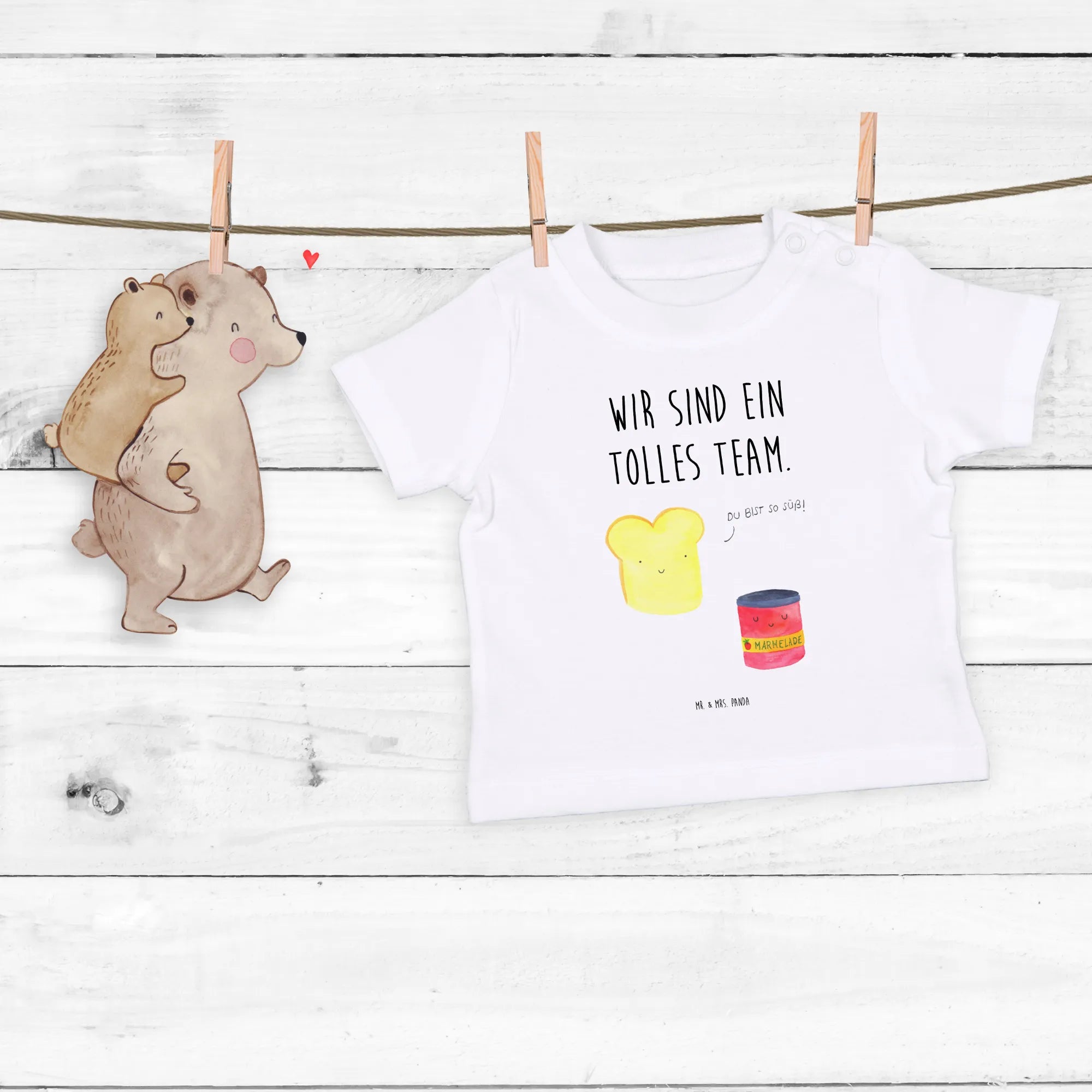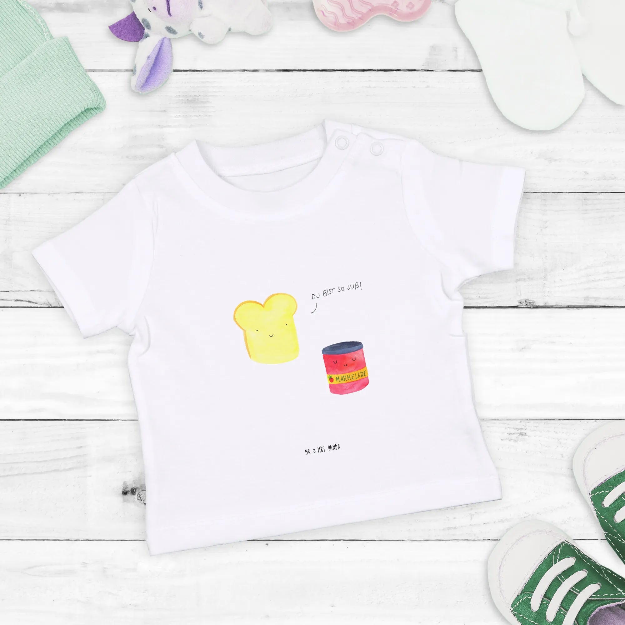 Imagine your bundle of joy proudly showing off this charming design, where a lovely piece of toast and a sweet jar of jam come together as a delightful duo. It's not just a shirt—it's an expression of a sweet personality! Each piece is lovingly hand-drawn by Mrs. Panda with watercolor, capturing the whimsical essence of small animals in a colorful world filled with happiness.
