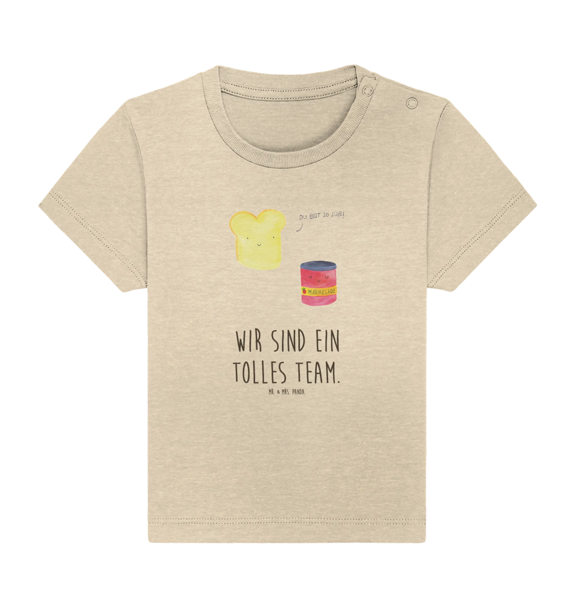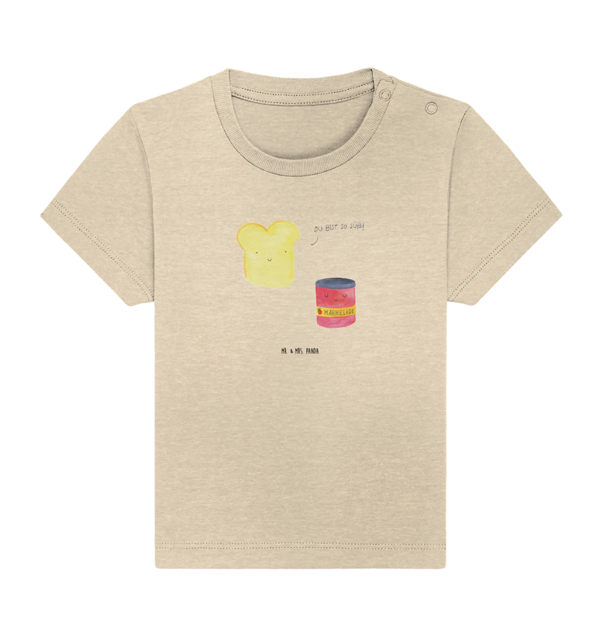 The playful design showcases a cute toast and jam duo, hand-drawn with love by Mrs. Panda, making it perfect for both boys and girls. Whether you’re celebrating a baby shower, a birthday, or just want to surprise the new parents, this organic baby shirt is a heartwarming gift choice. It's unique, funny, and will bring smiles to everyone who sees it!