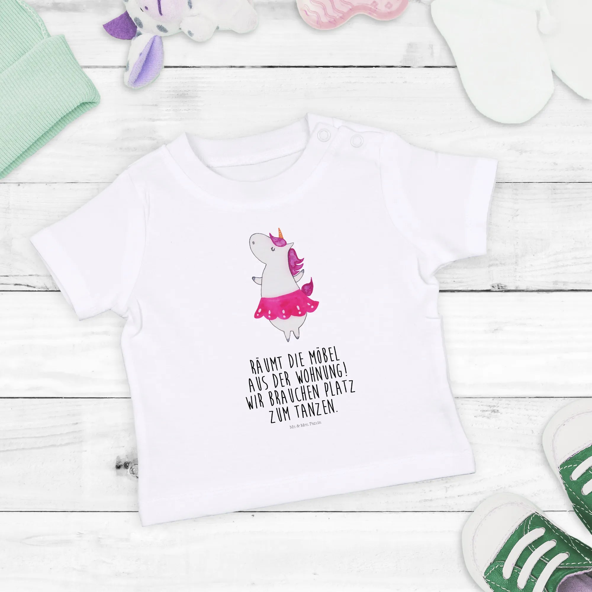 Say goodbye to boring outfits and hello to fun and flair! Our Unicorn Dancer shirt embraces the joy of movement with a whimsical charm. Plus, it encourages little ones to express themselves through dancing and playing. When they twirl in this shirt, everyone will surely want to join in the fun, moving the furniture out of the way to make space for dancing! As our slogan suggests, "Räumt die Möbel aus der Wohnung! Wir brauchen Platz zum Tanzen!"