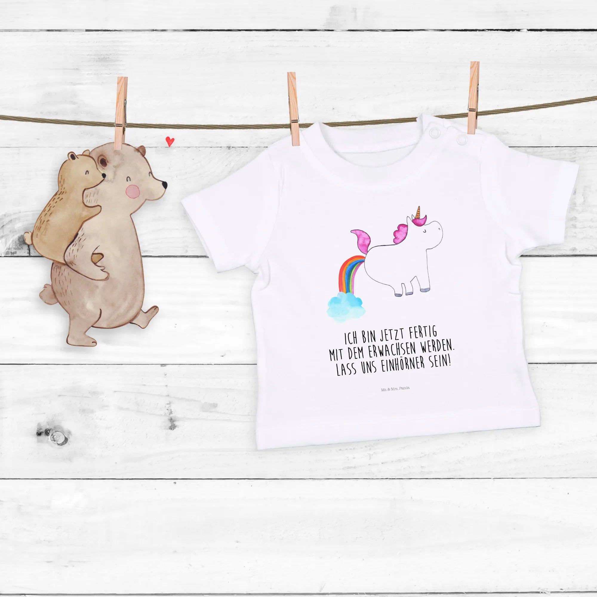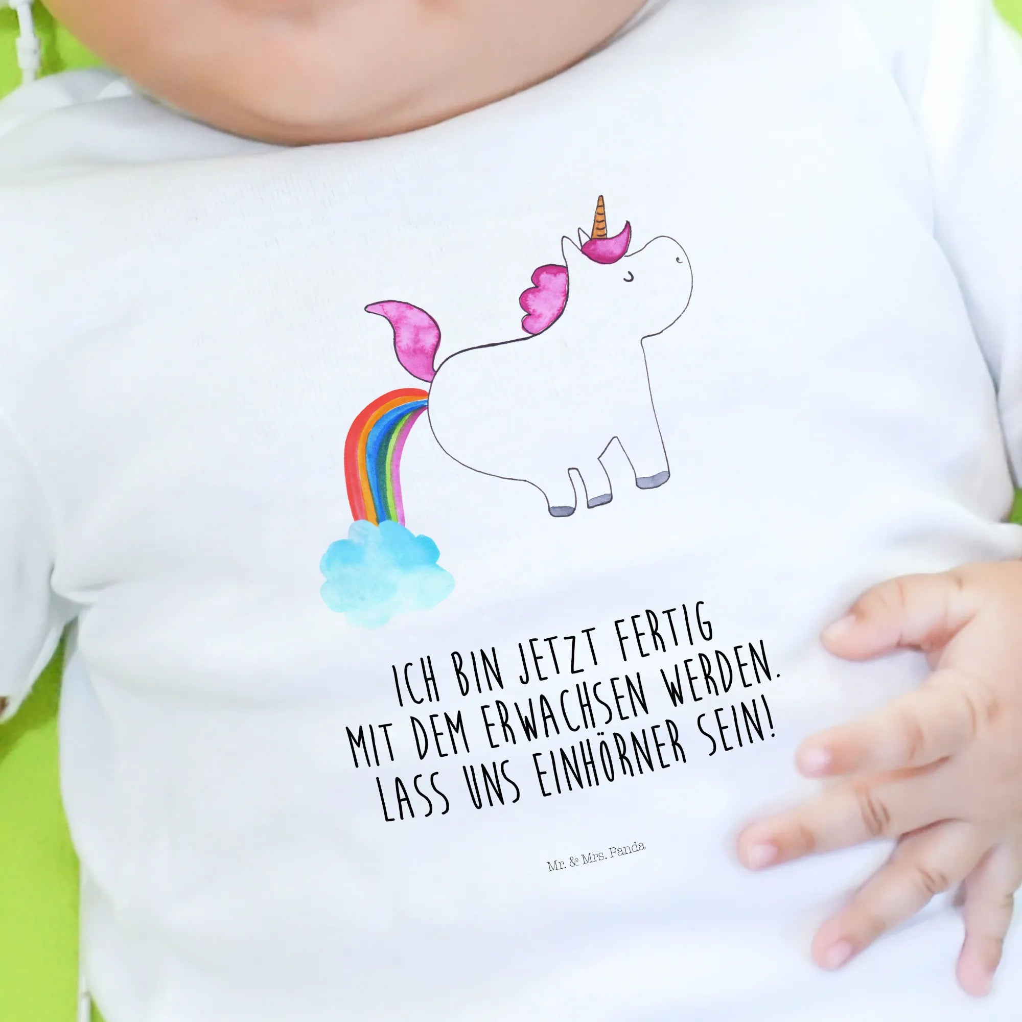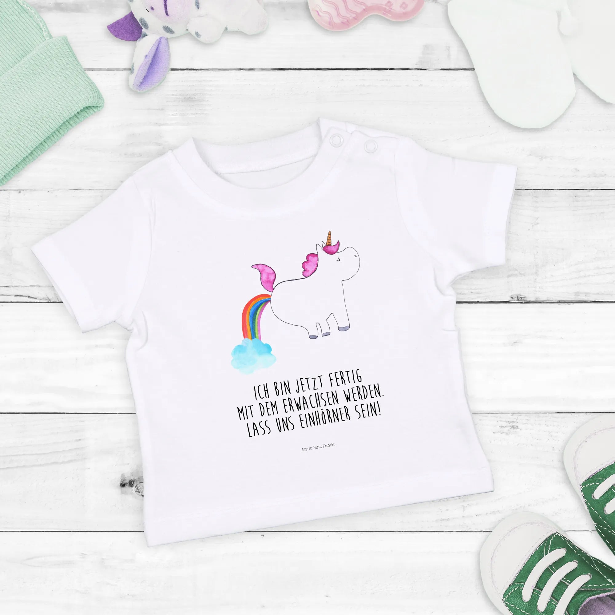 Moreover, this shirt is part of Mr. & Mrs. Panda's exclusive Unicorn - Collection, a lovingly curated range of unicorn-themed apparel and gifts. Each piece features designs handcrafted by the talented Mrs. Panda in Hanover, Germany. This attention to detail and charming artistry makes every shirt a unique creation, ensuring that your baby stands out effortlessly among their peers.