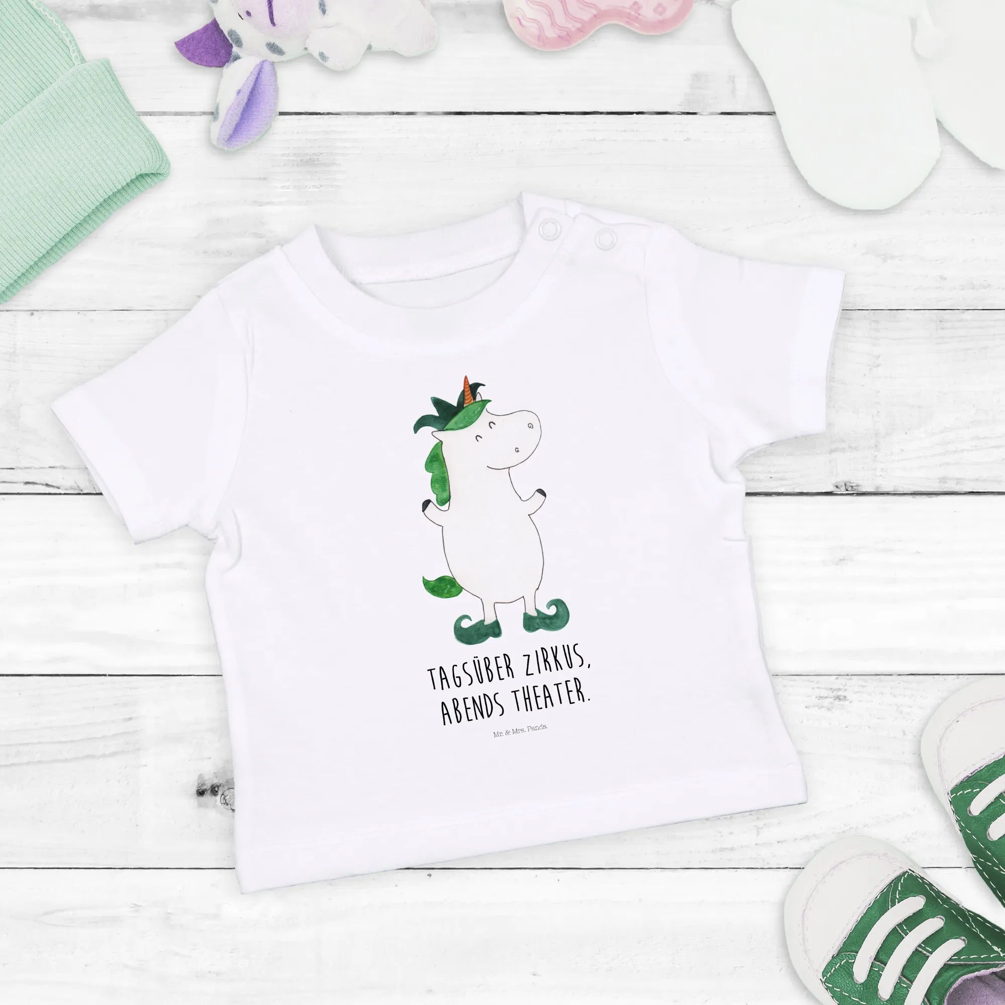 Are you ready to add a sprinkle of magic to your little one's wardrobe? The Organic Baby Shirt with the adorable Unicorn Joker motif from the enchanting Unicorn Collection by Mr. & Mrs. Panda is here to make every day feel like a whimsical adventure!