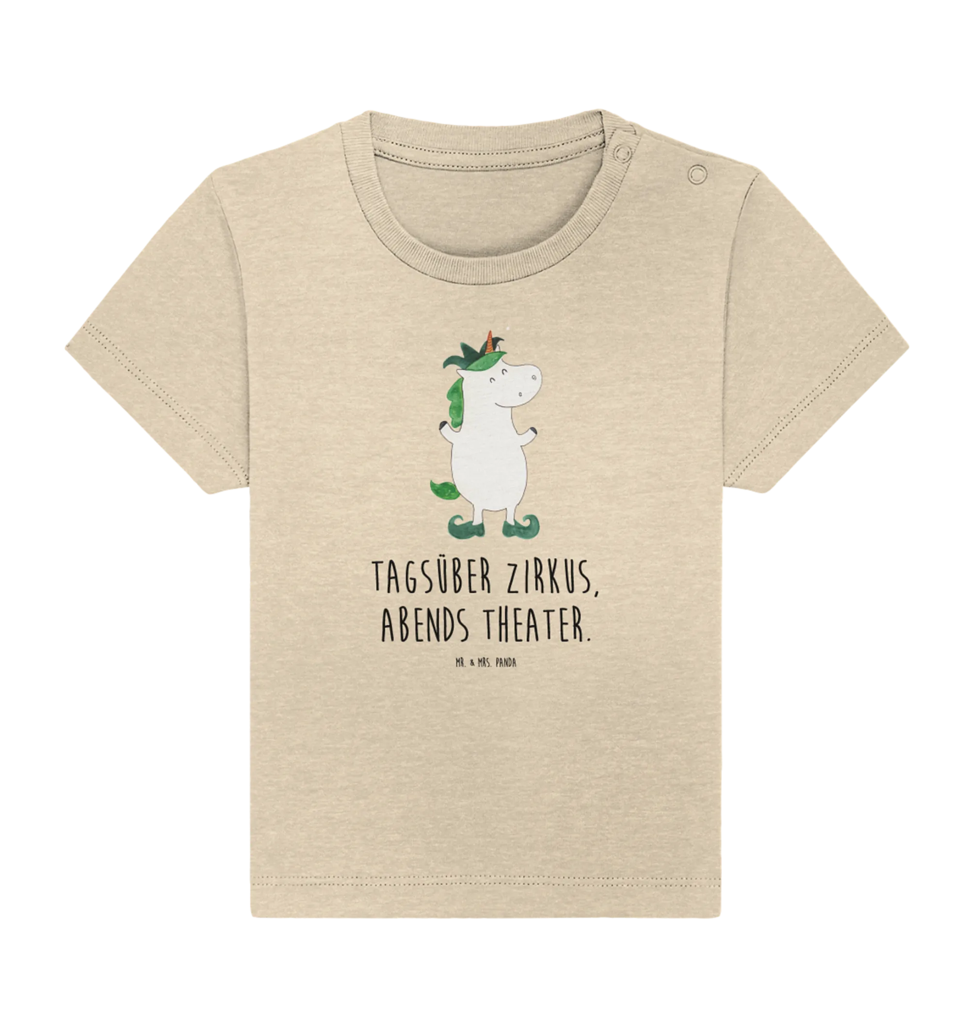 Crafted with love from sustainable organic cotton, this shirt is not only gentle on your baby’s sensitive skin but also on our planet. The enchanting unicorn motif, lovingly hand-drawn by Mrs. Panda in her cozy studio in Hanover, Germany, showcases a playful jester in a vibrant swirl of colors that spark joy and creativity in every glance.