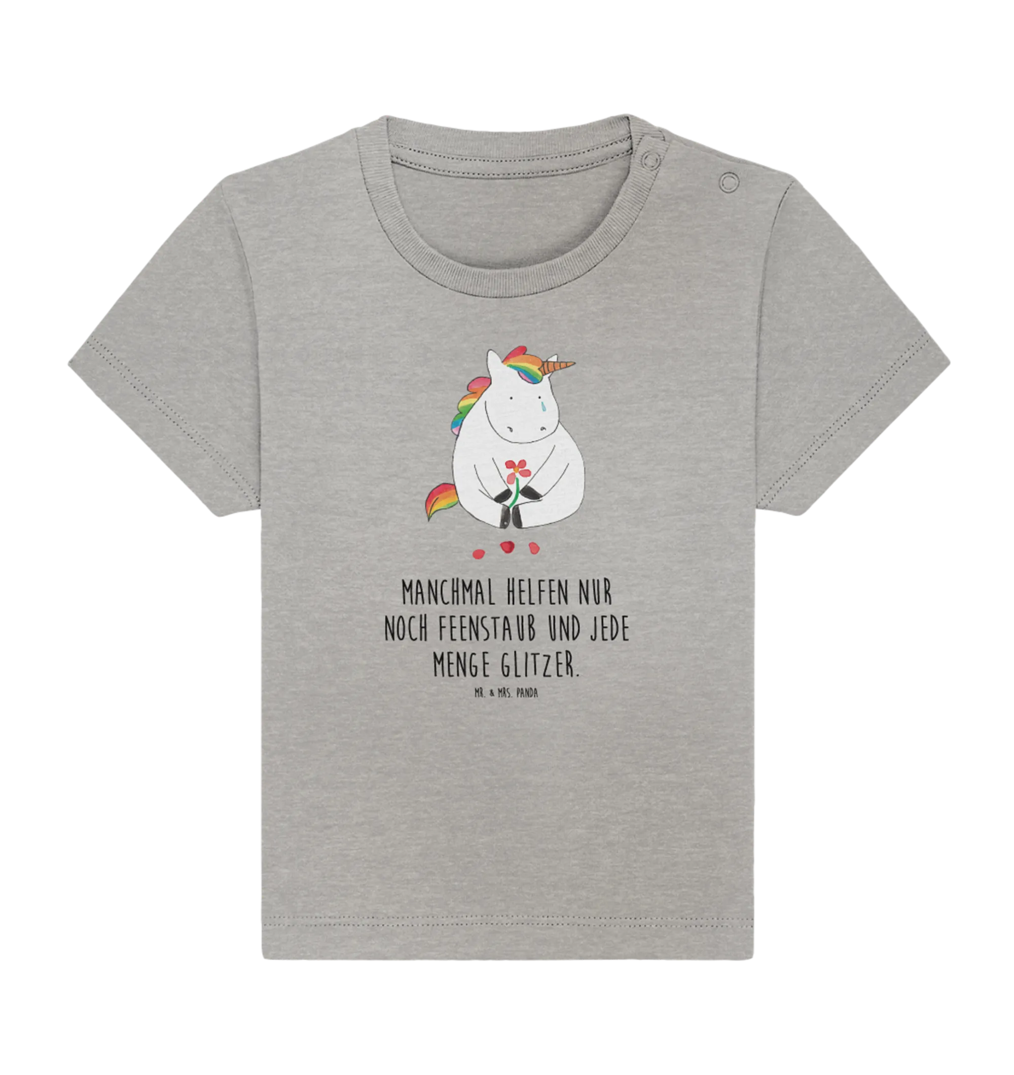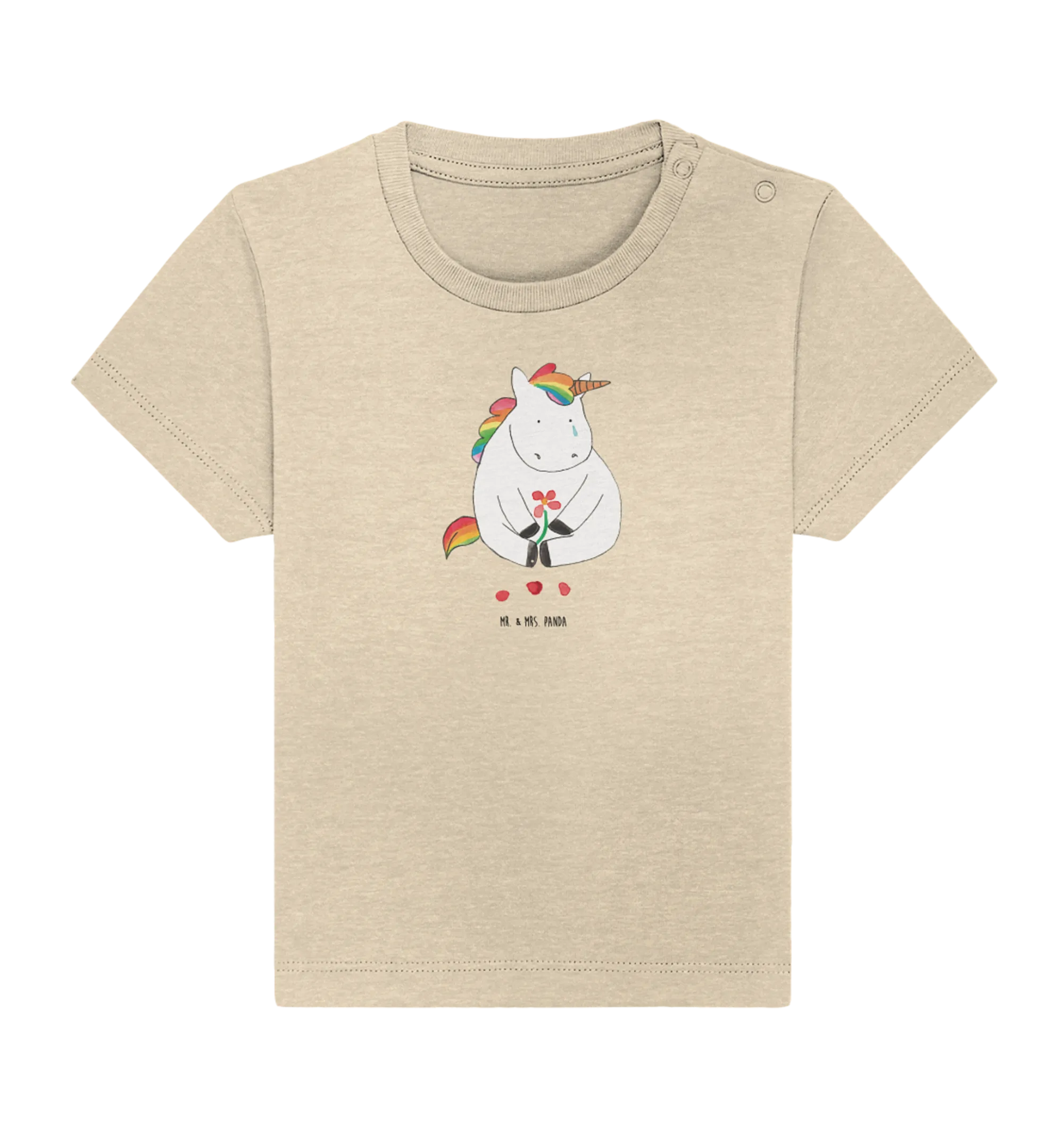 Introducing the adorable Organic Baby Shirt with the Unicorn Sad motif from the special Unicorn Collection by Mr. & Mrs. Panda! This lovely baby shirt is not just a piece of clothing, but a bundle of joy that speaks to the whimsical nature of childhood. If you’re searching for a perfect gift for a little one aged between 6 to 12 months, look no further! The Unicorn Sad shirt is beautifully designed with a hand-drawn sad unicorn, featuring a little tear in its eye, perfectly capturing those sweet, tender moments in life when a bit of comfort is needed. Isn’t it just precious? 🌈