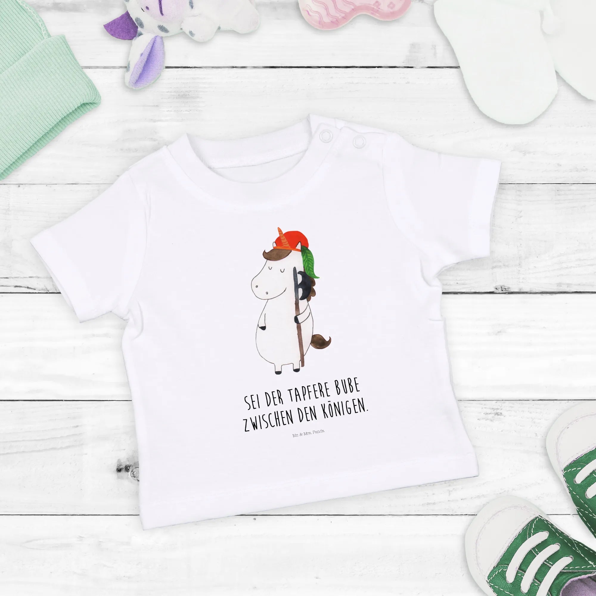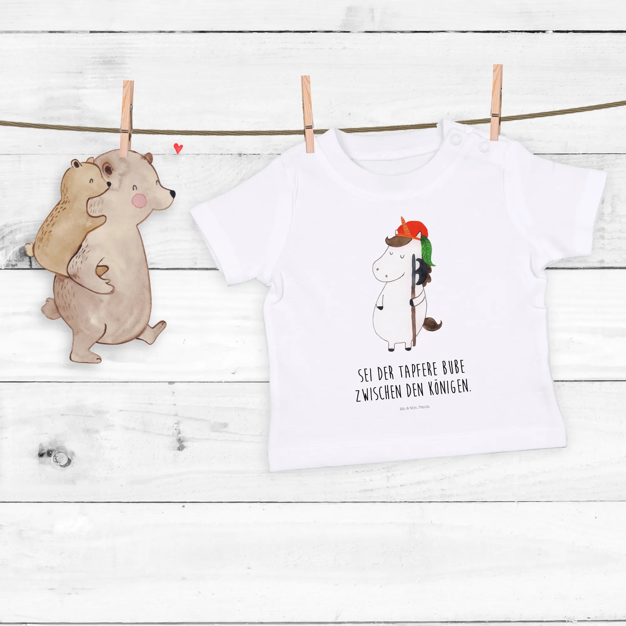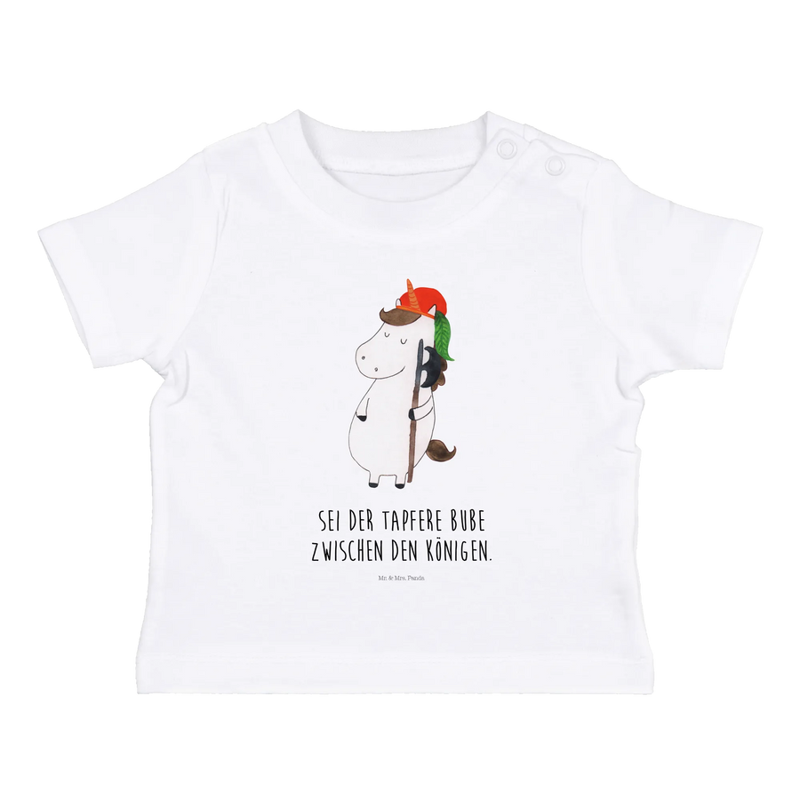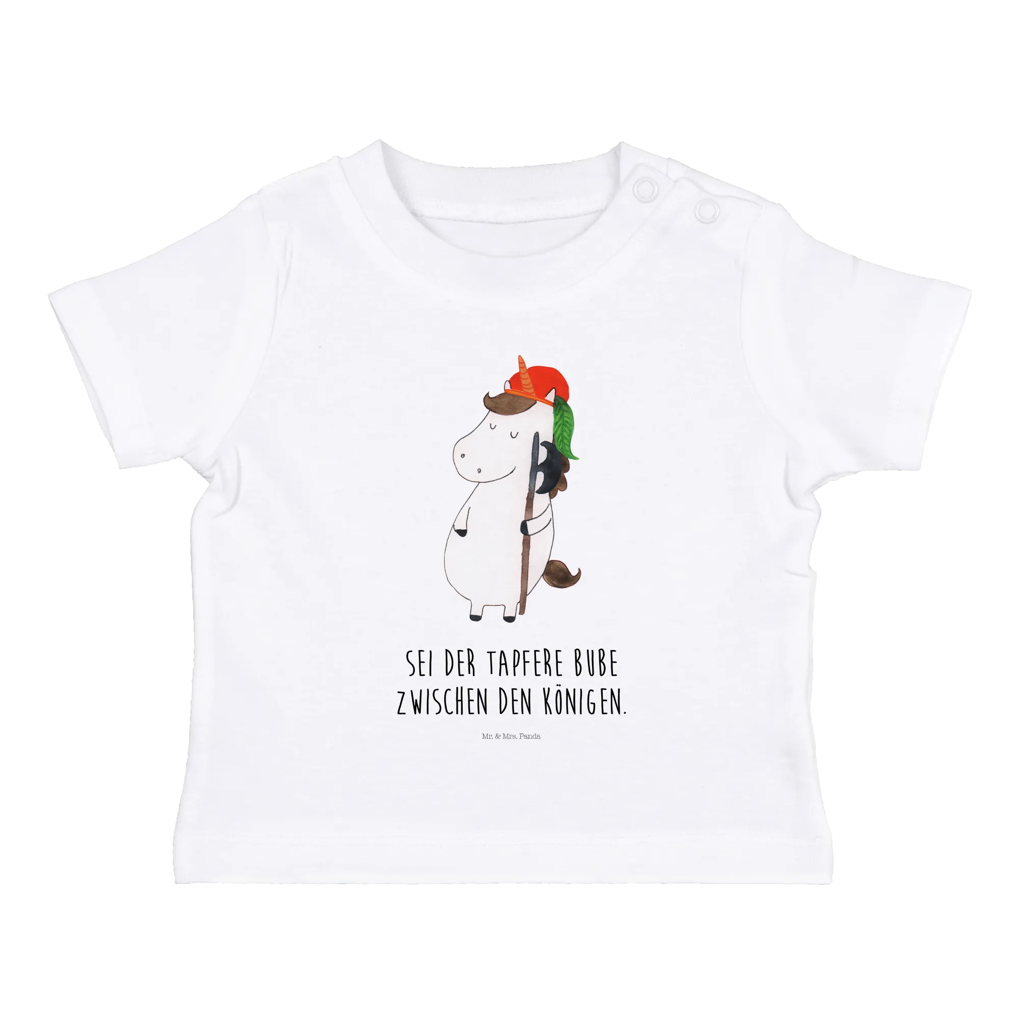 As part of the exclusive Unicorn Collection by Mr. & Mrs. Panda, this shirt represents artisanal quality and style. Each design is hand-drawn with love, ensuring that your baby is not only dressed in a unique piece of art but also feels comfortable throughout the day. This collection aims to inspire joy, courage, and creativity in every little one wearing it, with the slogan "Sei der tapfere Bube zwischen den Königen!" inspiring your child to be the brave little hero among friends.