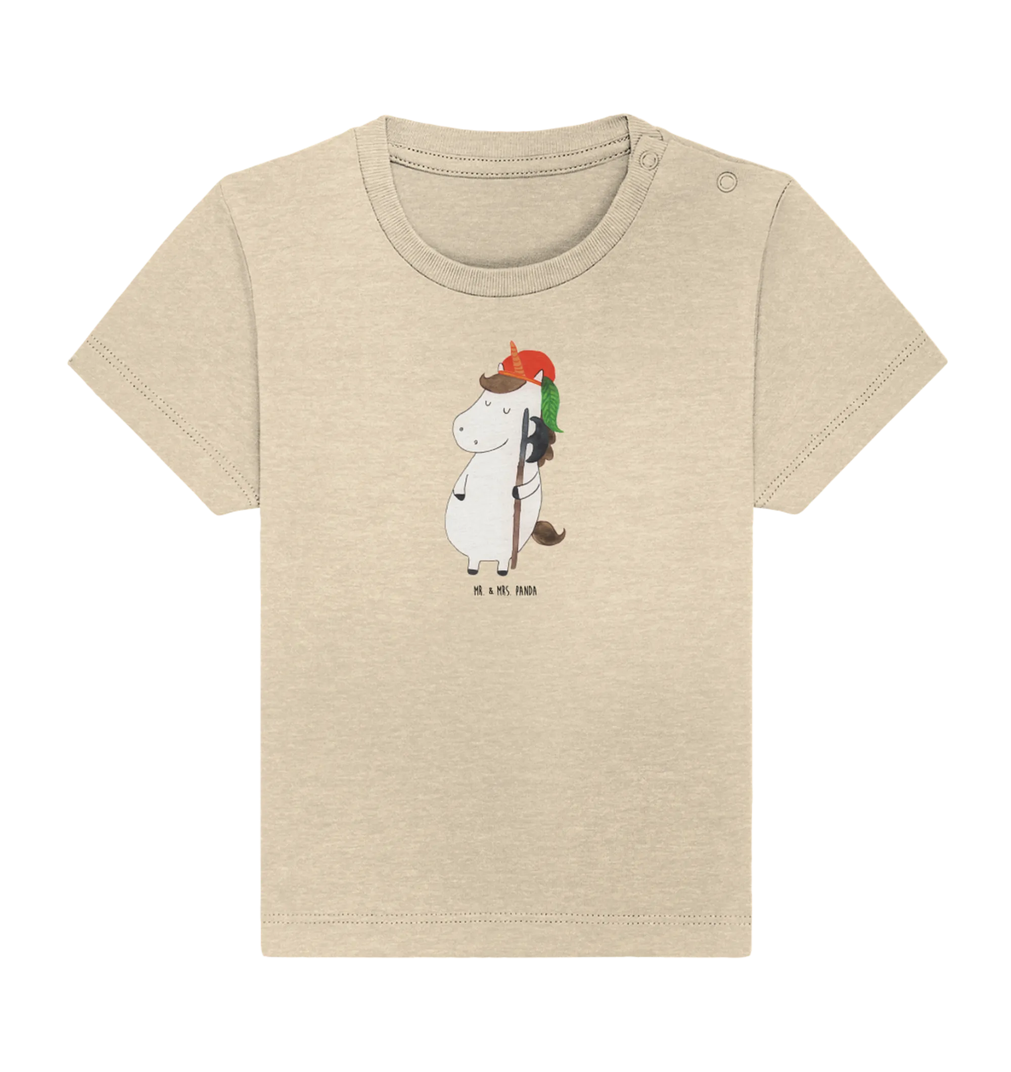 Crafted from high-quality organic cotton, this shirt is soft, breathable, and gentle against your baby's delicate skin. We prioritize comfort above all, and you can trust that our shirts are made with love and care in the heart of Northern Germany. With a stunning illustration of a friendly unicorn holding a staff and wearing a charming helmet, each shirt features a unique color palette lovingly hand-drawn by Mrs. Panda.