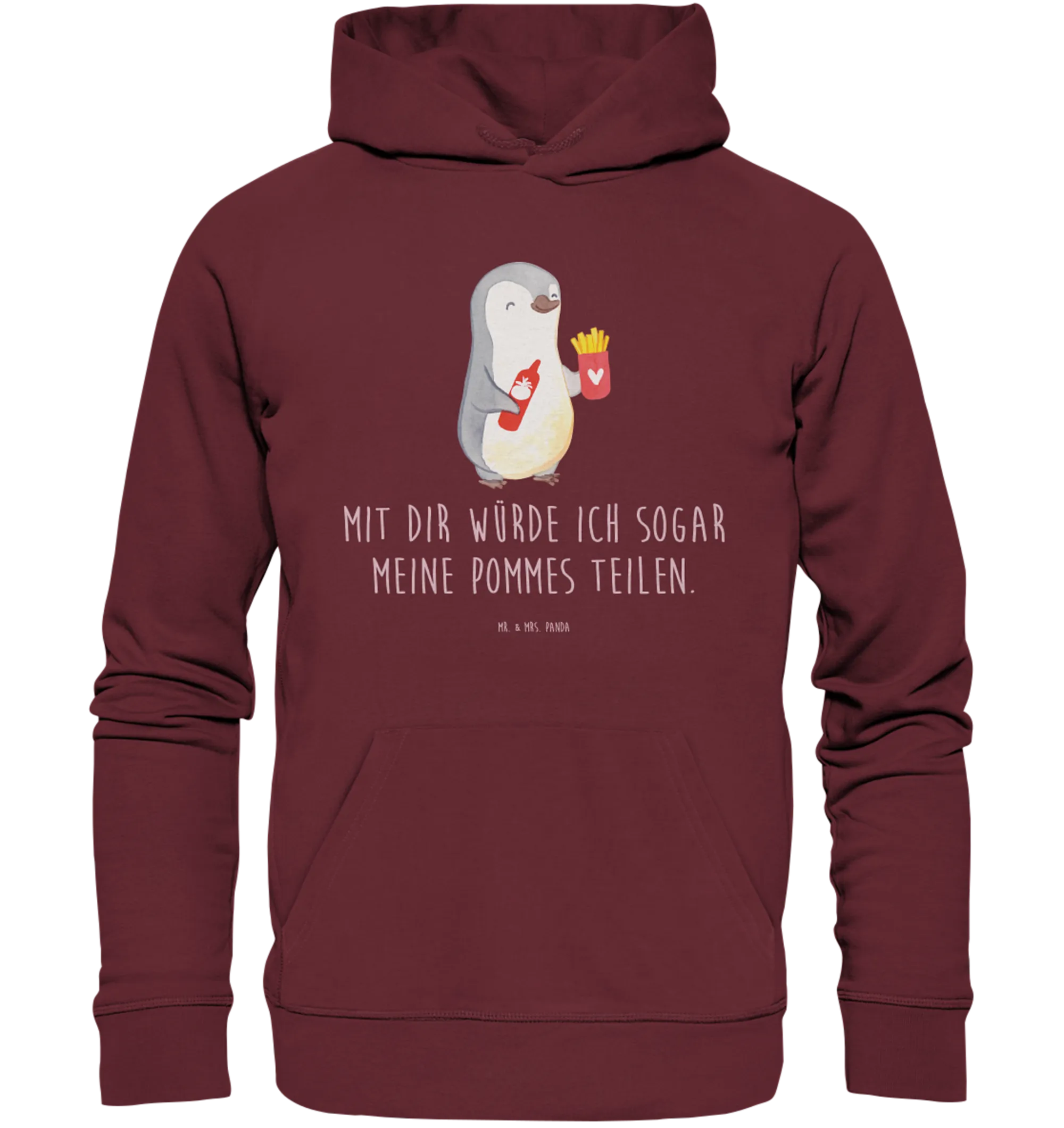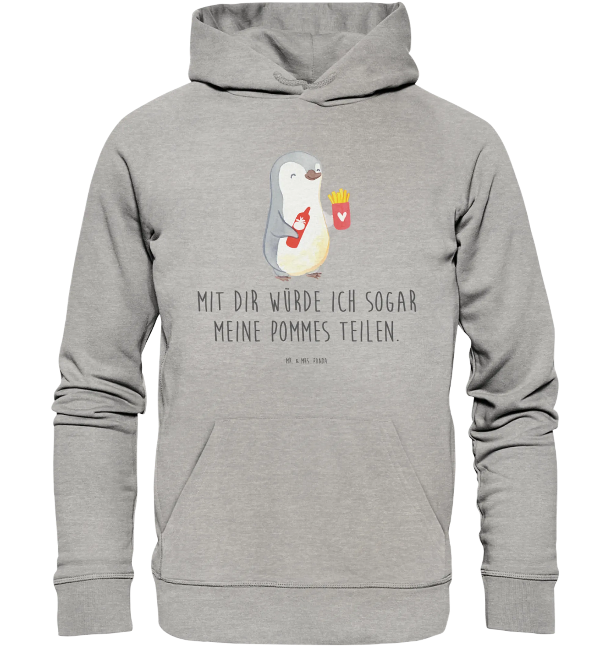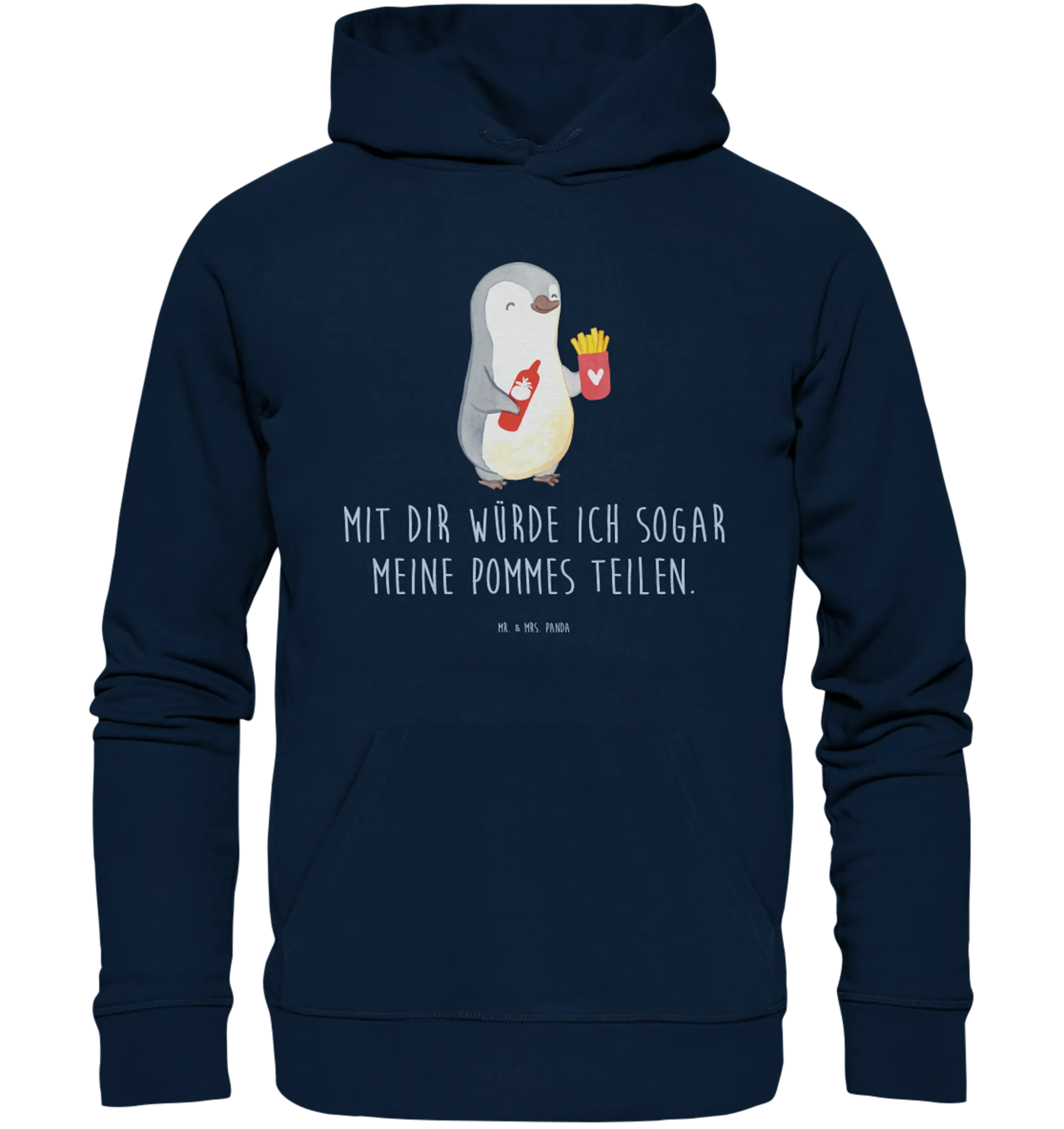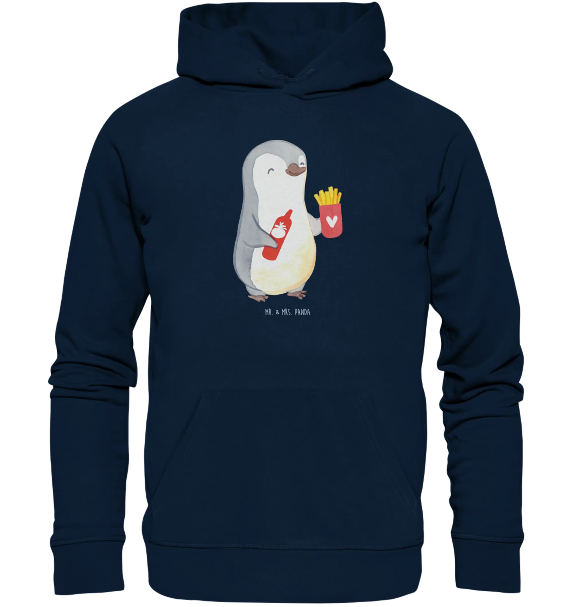 Organic Hoodie penguin French fries - Size XXL - with saying - French Navy