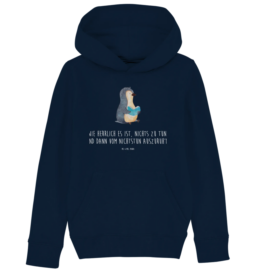 Organic Kids Hoodie Penguin A book - 12-14 years (152/164) - with a saying - French Navy