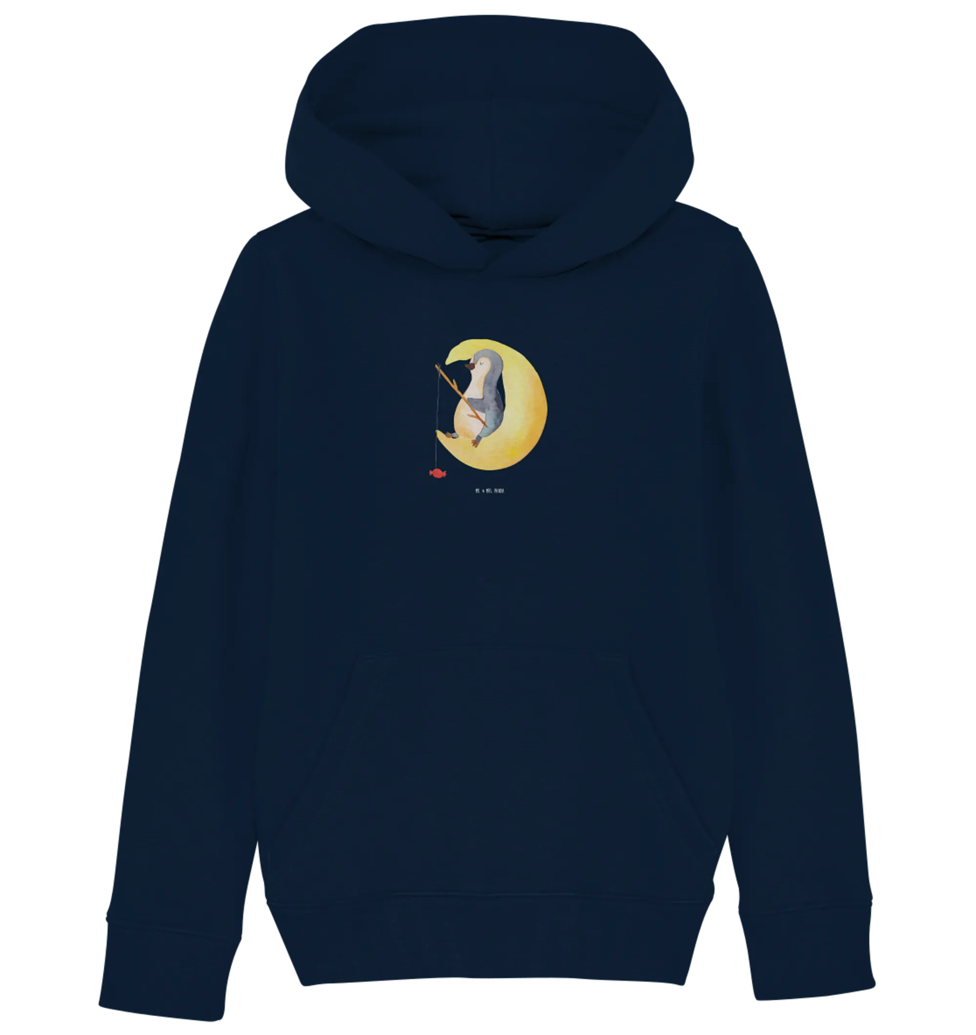 Organic Kids Hoodie Penguin moon - 12-14 years (152/164) - with a saying - French Navy