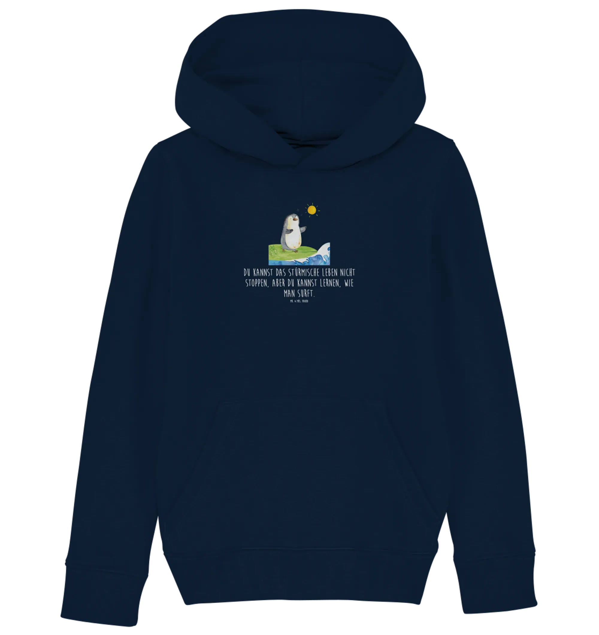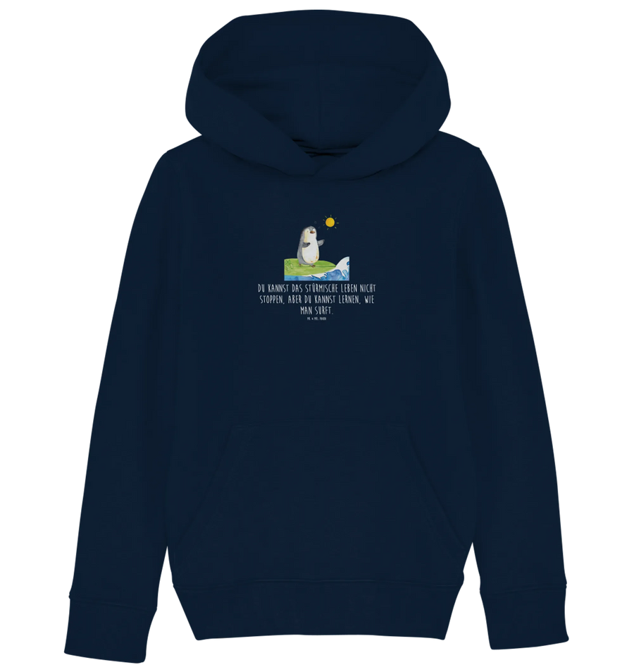 Organic Kids Hoodie Penguin surfer - 12-14 years (152/164) - with a saying - French Navy