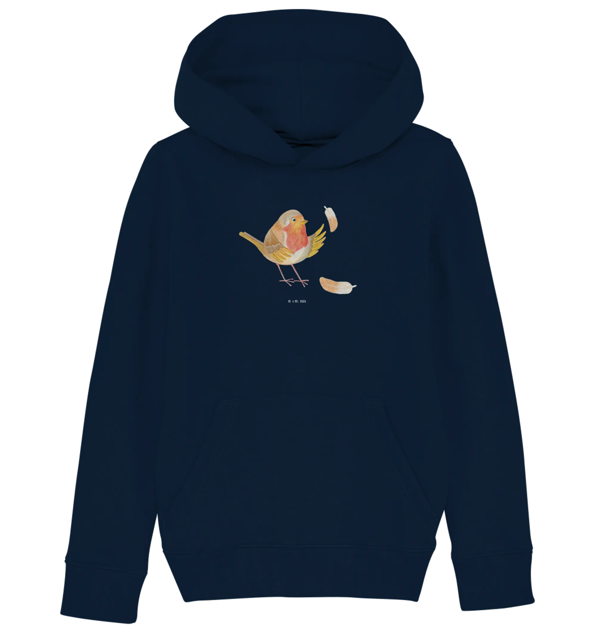 Organic Kids Hoodie robin feathers - 12-14 years (152/164) - with saying - French Navy