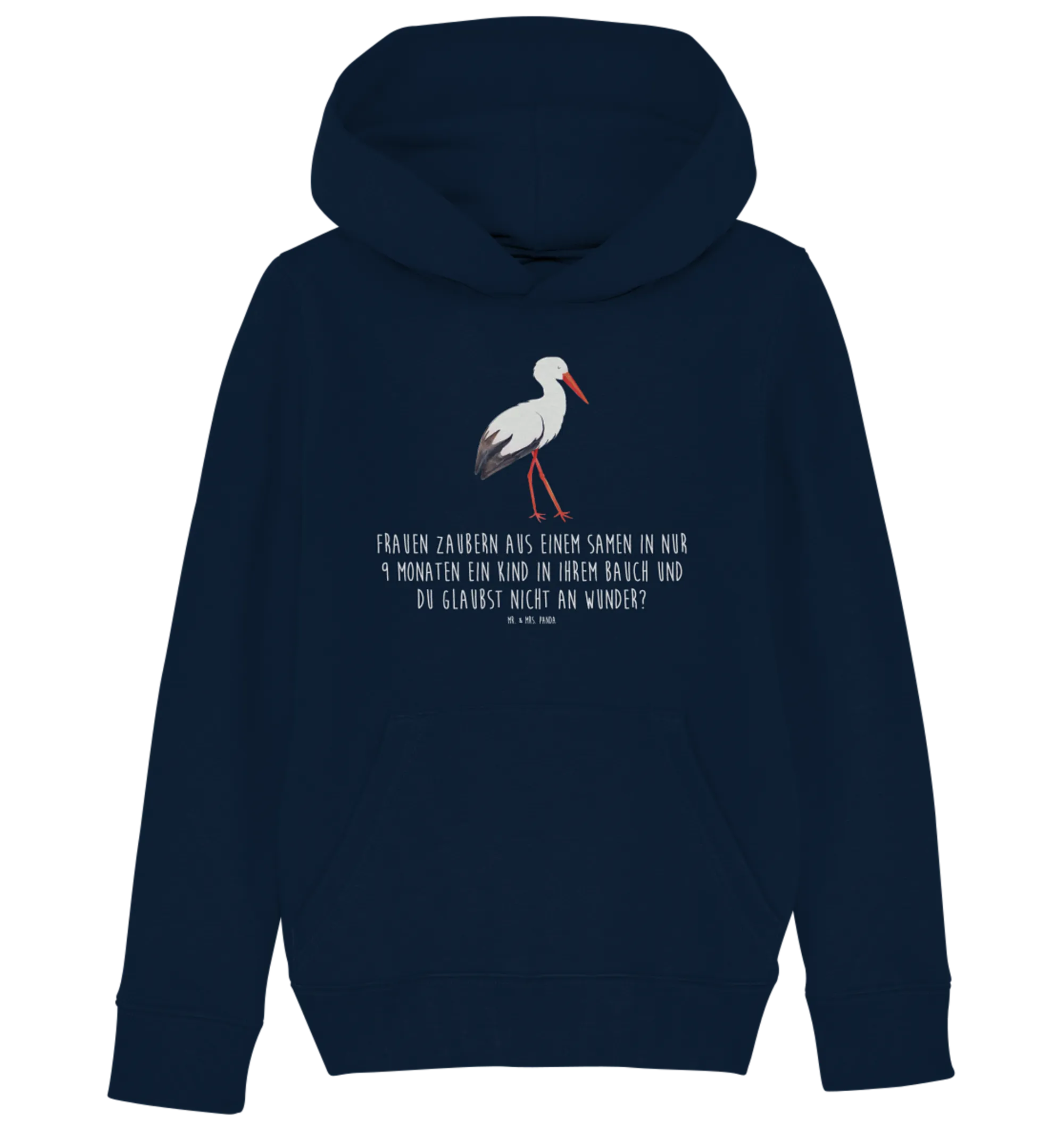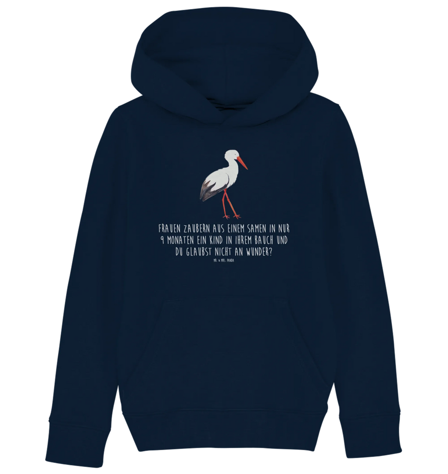 Organic Kids Hoodie Stork - 12-14 years (152/164) - with saying - French Navy
