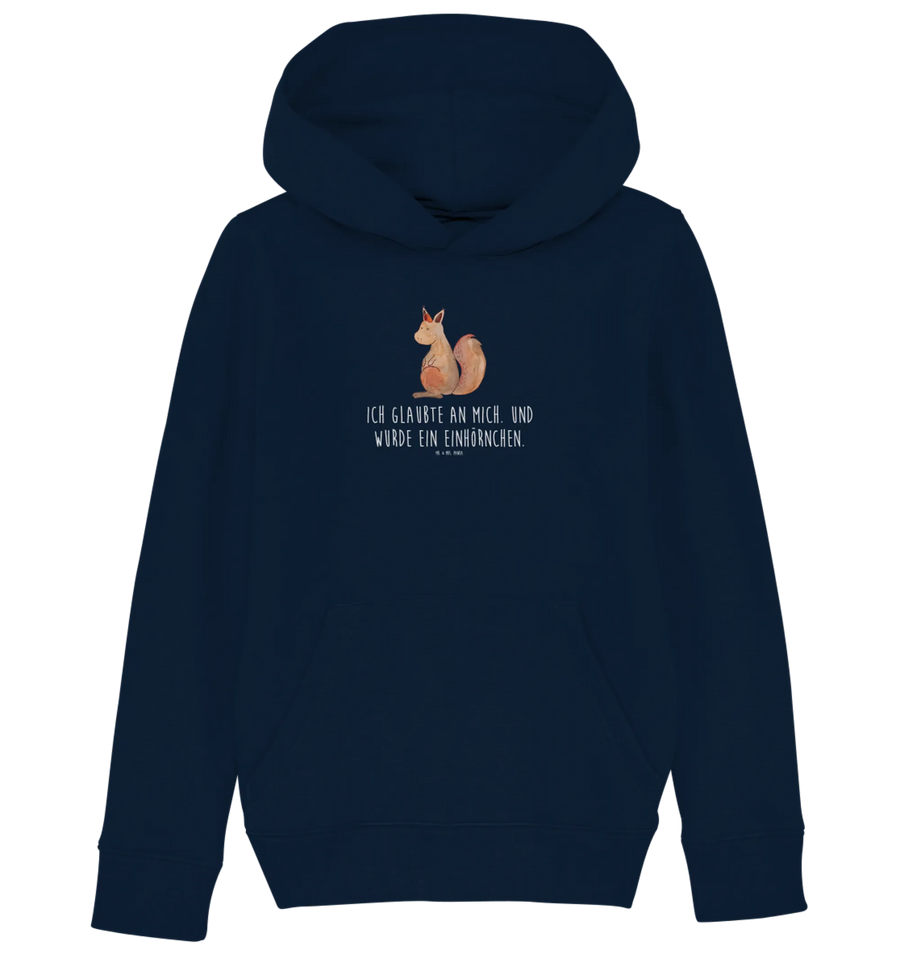 Made from soft and eco-friendly cotton, this hoodie will wrap your child in warmth while they explore their imagination. The adorable squirrel design, featuring a cute little horn, is not just an eye-catcher; it's a delightful invitation to believe in themselves. The lovely slogan "Ich glaubte an mich. Und wurde ein Einhörnchen" encourages kids to embrace their uniqueness and build confidence.