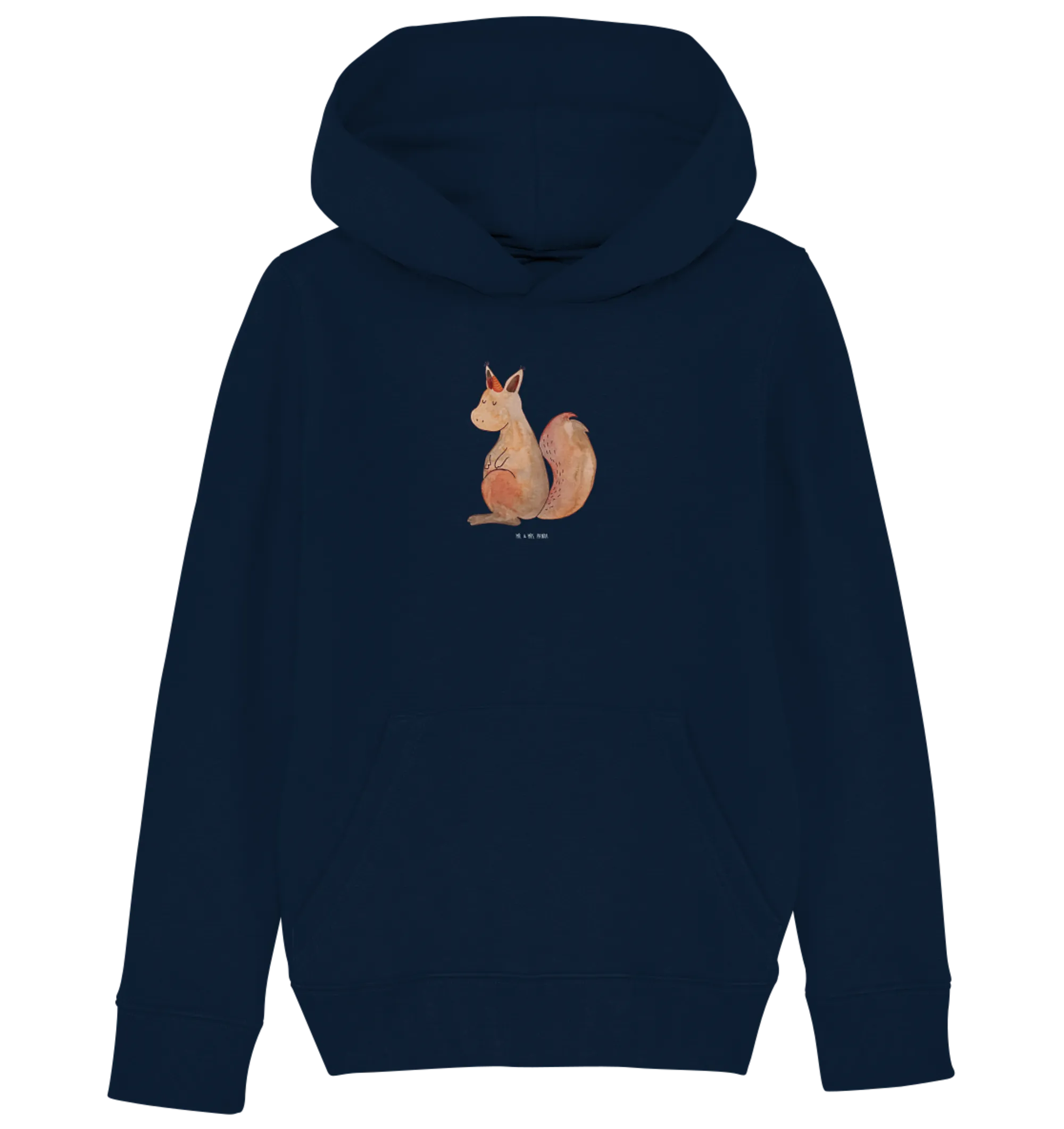 Crafted from high-quality organic cotton, this hoodie is soft against the skin and gentle on the planet. Parents will love that it's made from eco-friendly materials, ensuring their children can wear it comfortably while supporting sustainable fashion. The lovely French Navy background color adds a touch of elegance, while the uniquely designed squirrel motif brings a sense of fun and whimsy. This little critter, complete with a charming horn, will surely capture the hearts of any child!