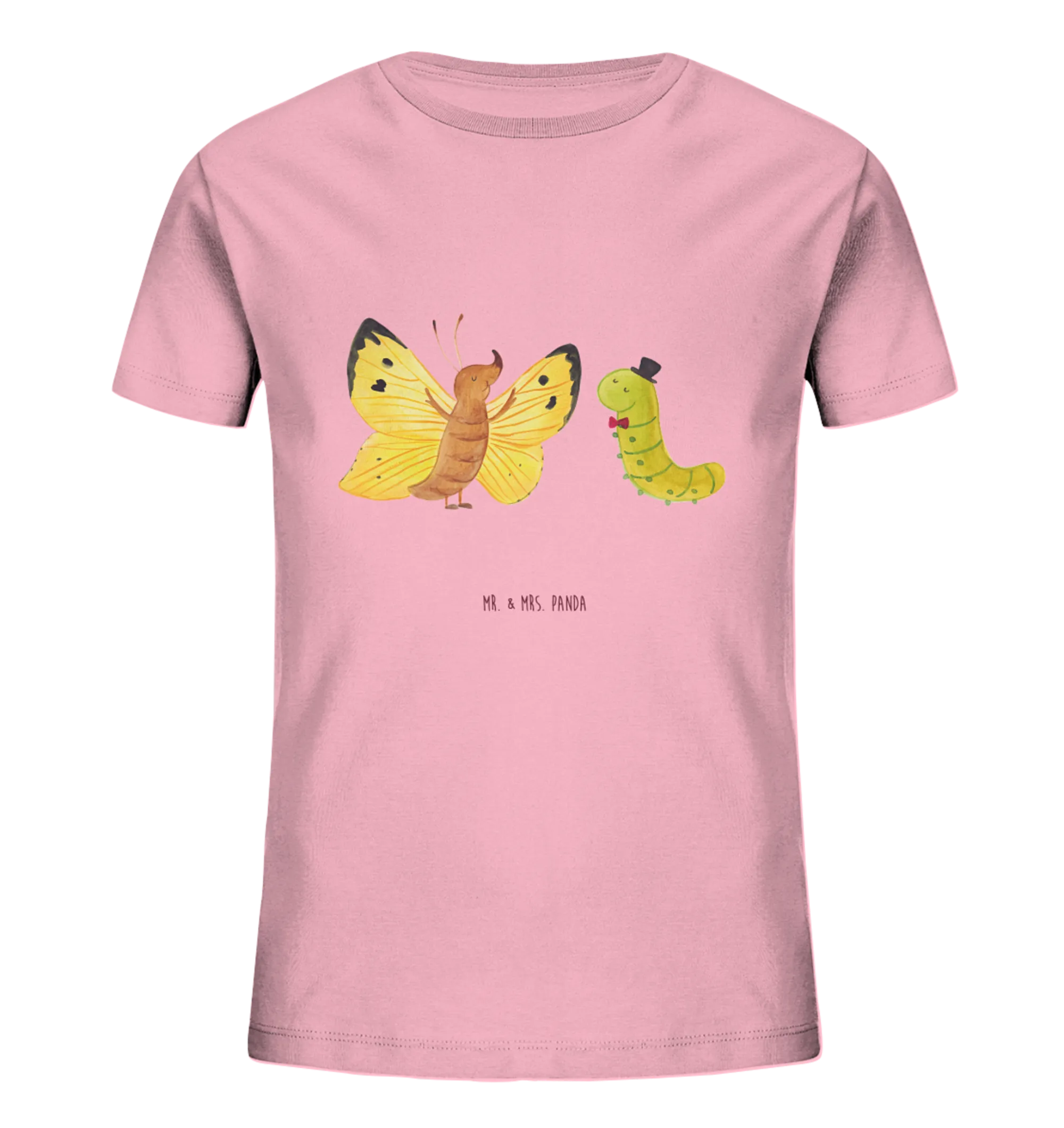 Introducing the delightful Organic Kids T-Shirt featuring our charming Caterpillar & Butterfly motif from the beloved Small World collection by Mr. & Mrs. Panda! This enchanting design not only captures the imagination of children but also carries a heartwarming message about growth and transformation.