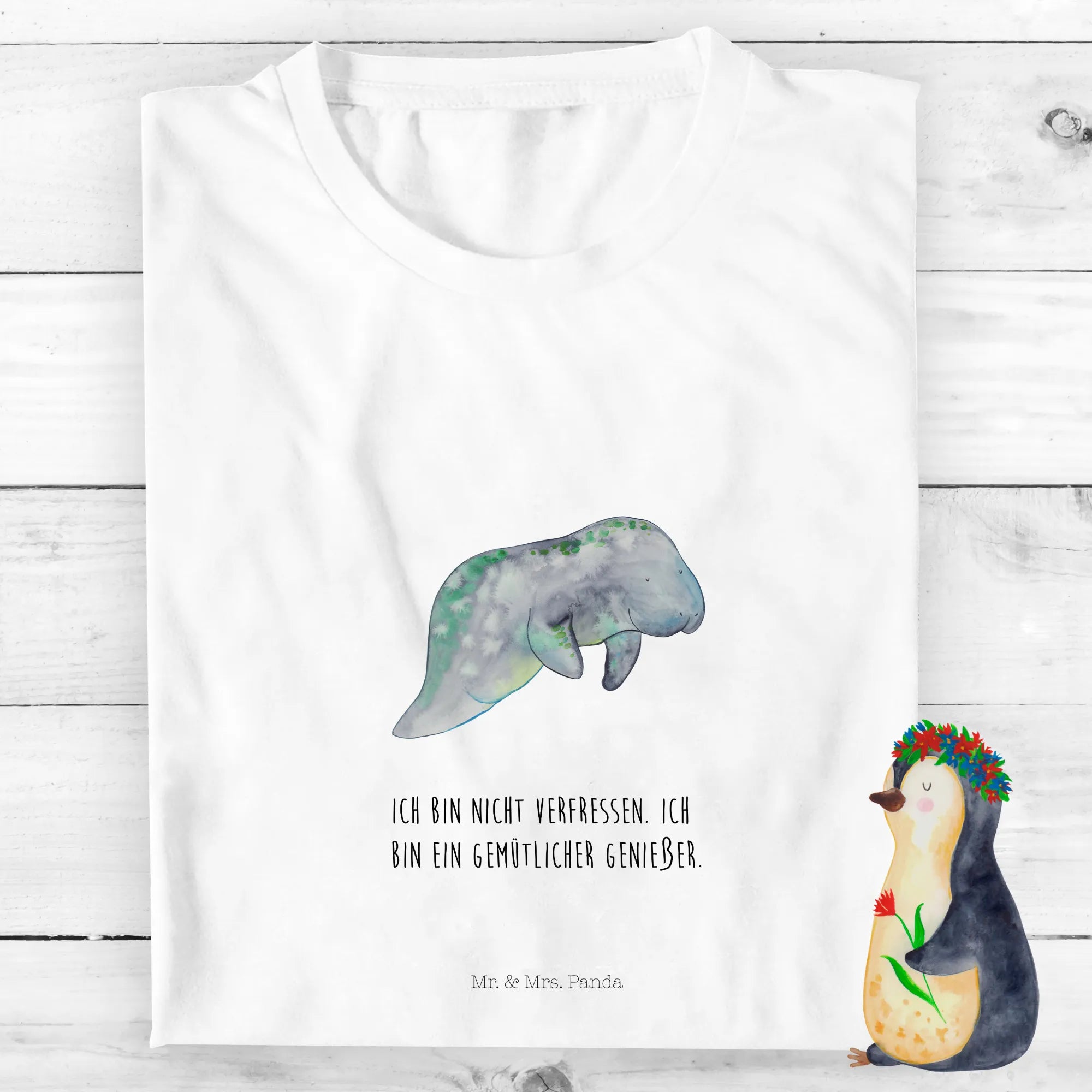 Experience the calming spirit of our cheerful manatee motif, exquisitely crafted with lovely watercolor shades of blues and greens. This gentle giant embodies relaxation and reminds us that enjoying life is more potent than any diet. The slogan, 'Ich bin nicht Verfressen. Ich bin ein gemütlicher Genießer,' sings the praises of embracing our inner food lovers. Whether you're reaching for a delightful sweet or a satisfying meal, savor the flavor without the worry of losing weight. Dive into blissful enjoyment today!
