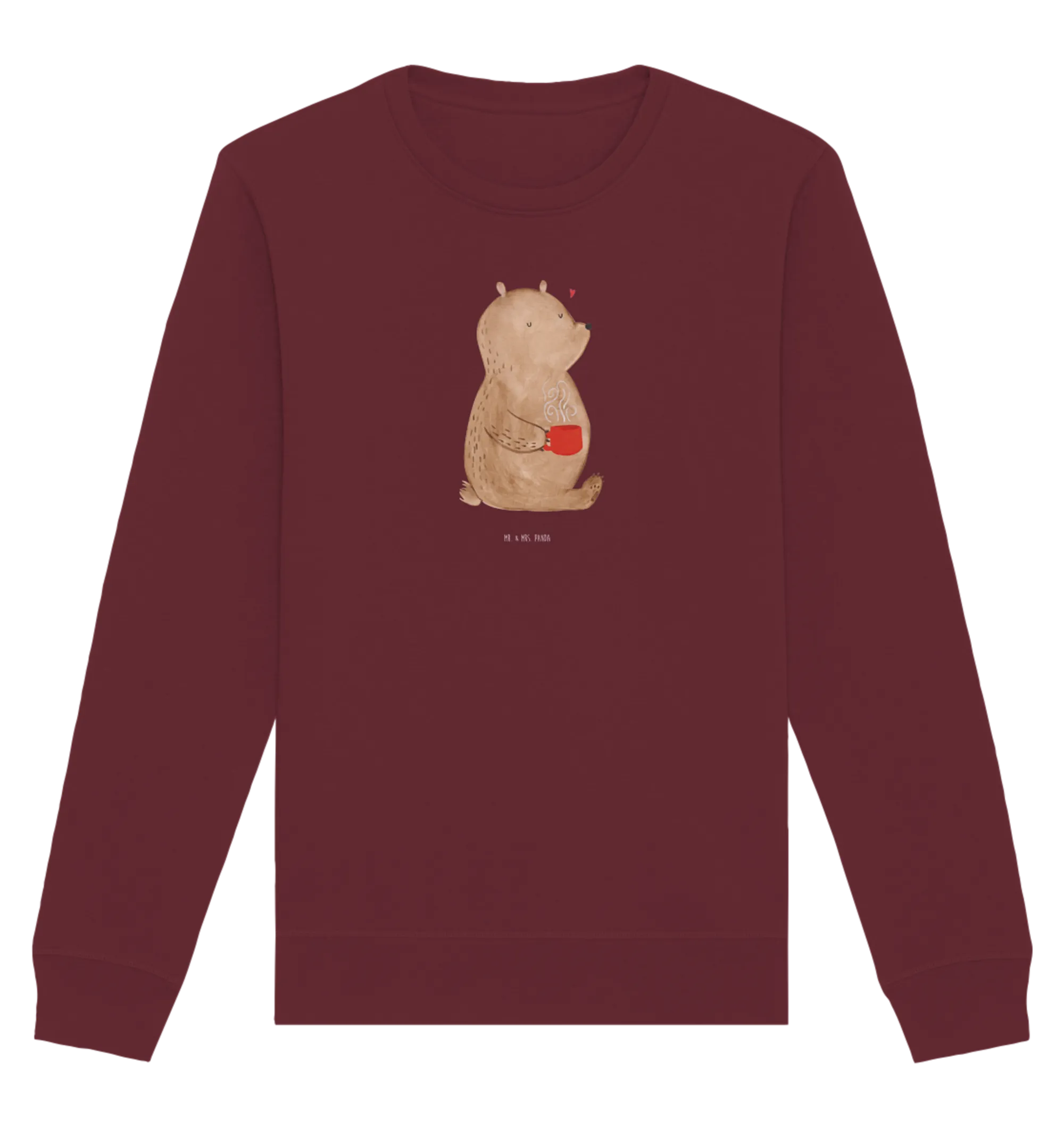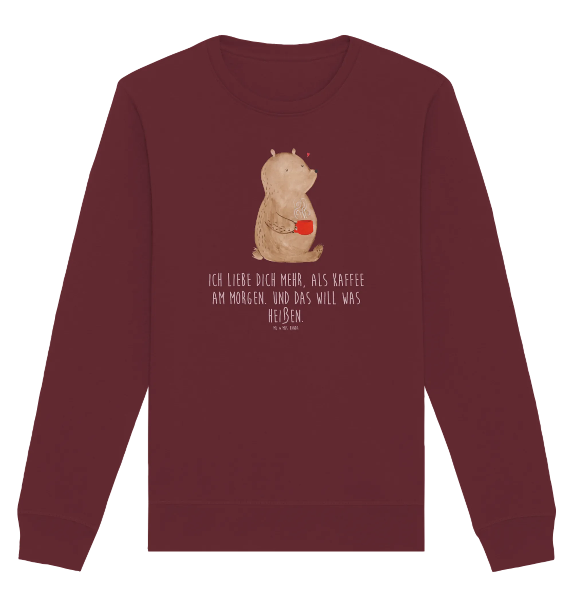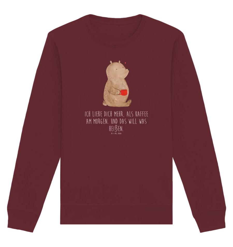 Organic Pullover bear morning coffee - Size XXL - with a saying - Burgundy