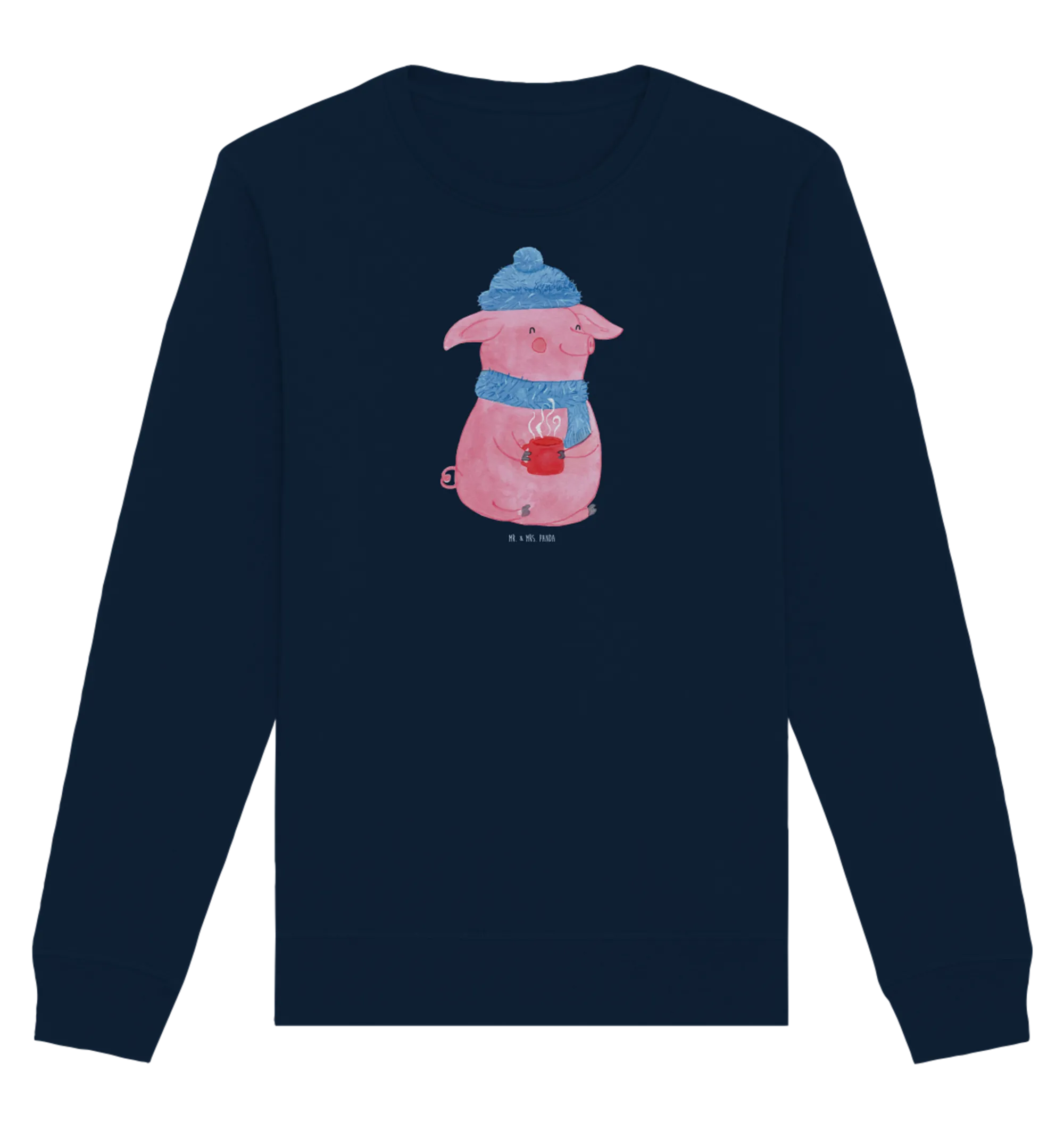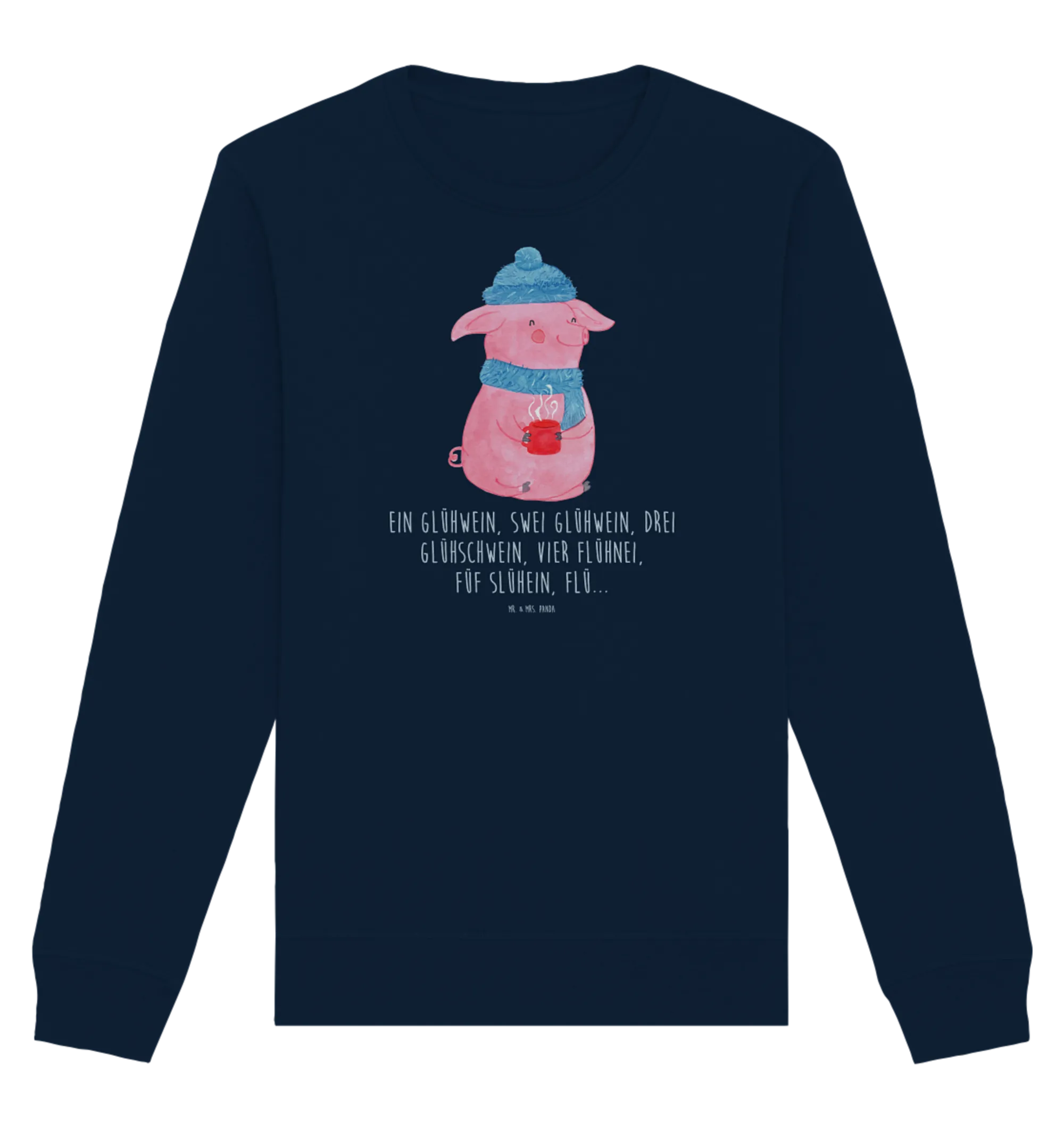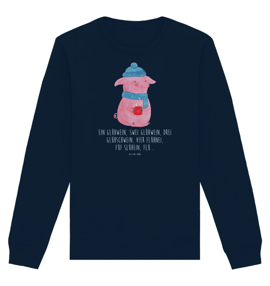 Organic Pullover piggy Mulled wine - Size XXL - with a saying - French Navy