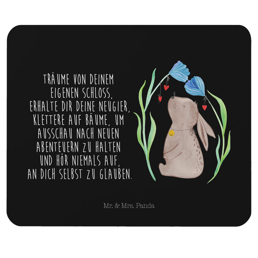 Mouse mat Hare flower - with saying - Black