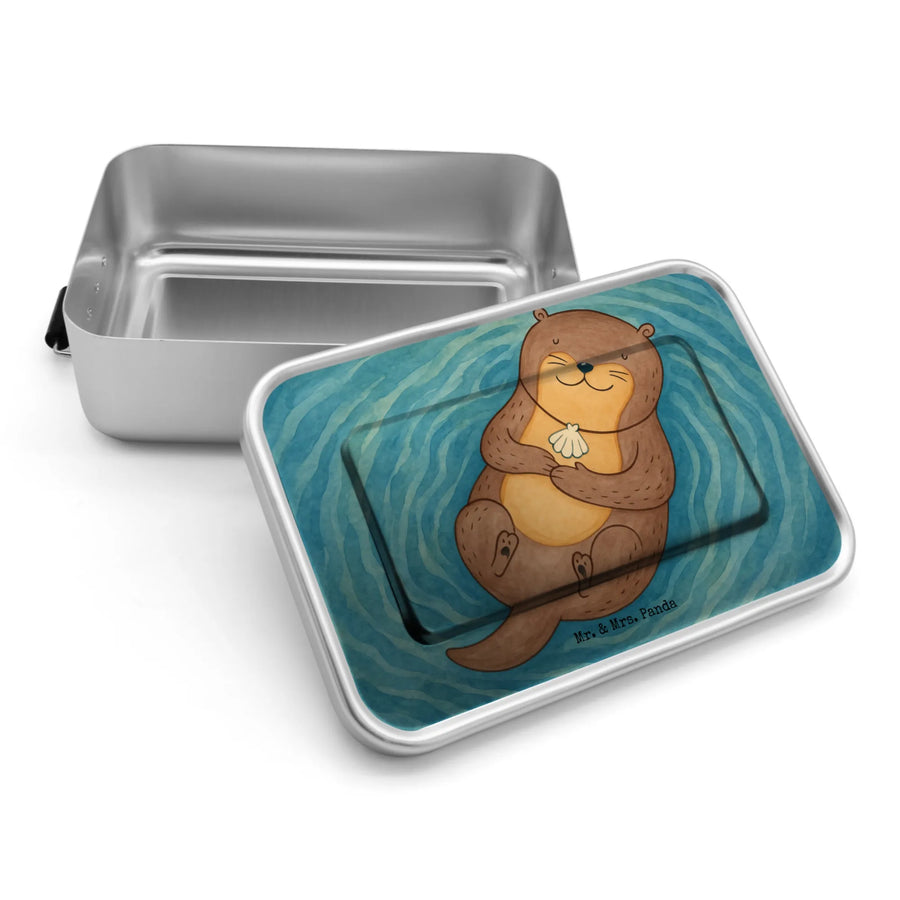 Hol dir die maritime Leichtigkeit in die Pause: Unsere Metall Brotdose mit dem süßen Otter-Motiv zeigt einen entzückenden Otter mit Muschelmedaillon – handgezeichnet von Mrs. Panda. Dieses liebevolle Motiv ist perfekt für alle, die Otter, das Meer und fröhliche Designs lieben.