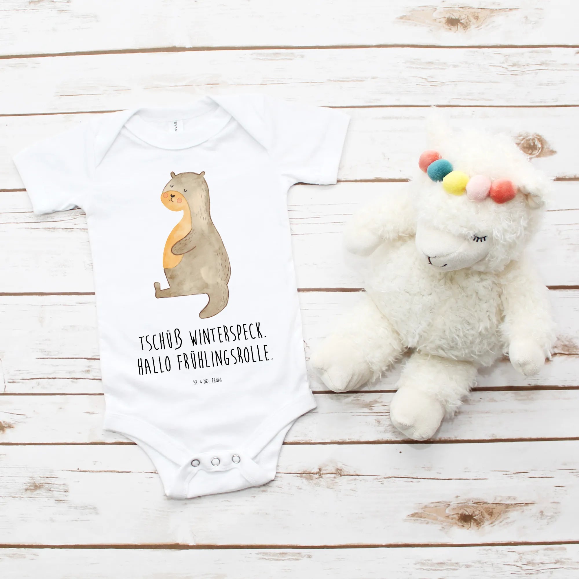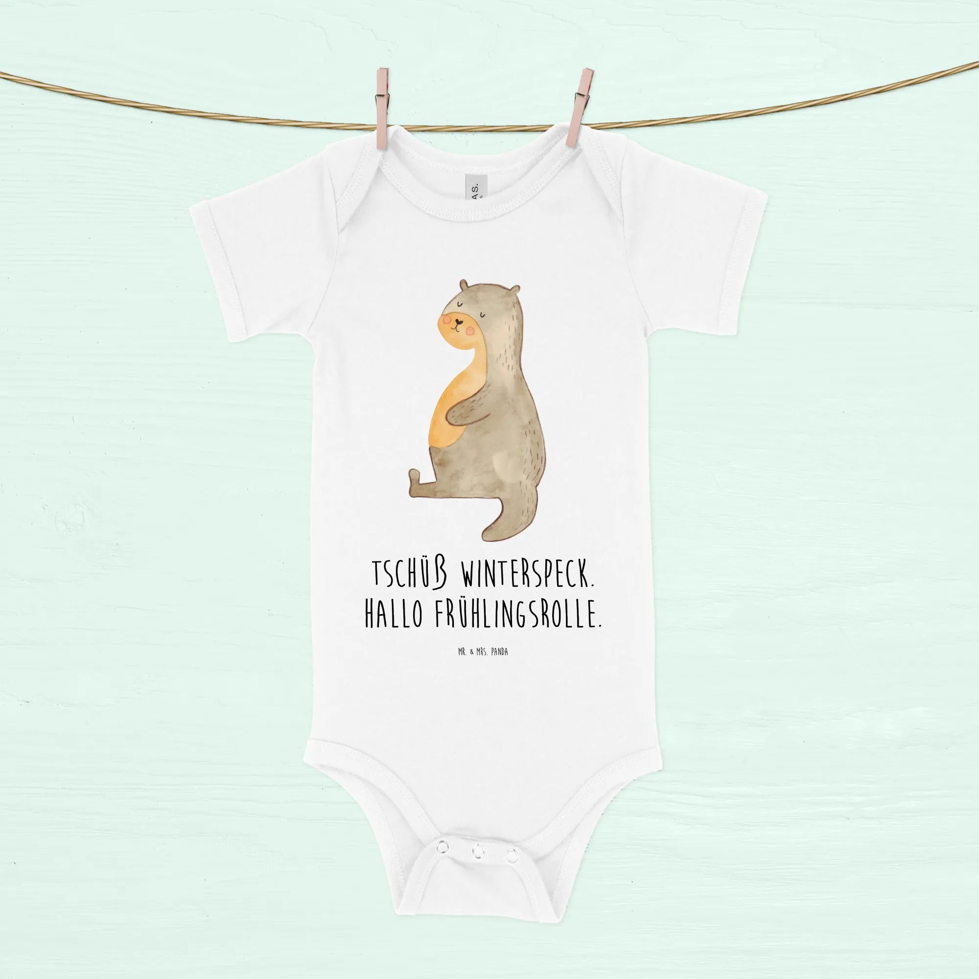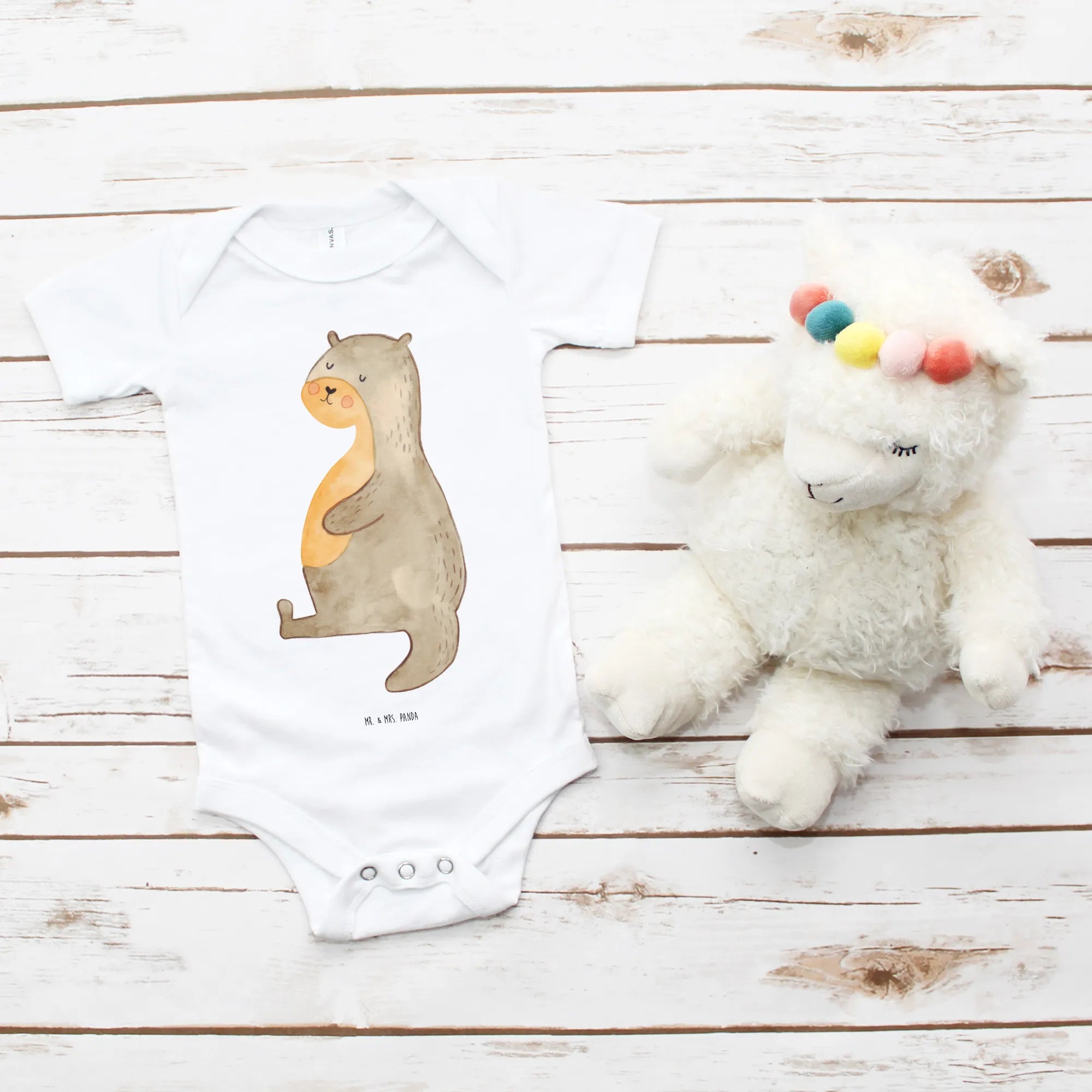 Crafted with love and care, this organic baby body is made from soft, eco-friendly cotton, ensuring that your baby's sensitive skin is wrapped in the gentlest materials. The sweet portrait of a plump otter happily lounging with its adorable belly on display is sure to capture the attention of both baby and adults alike. The beautifully hand-drawn design by Mrs. Panda adds a unique touch, making it a cherished piece in any baby's wardrobe.