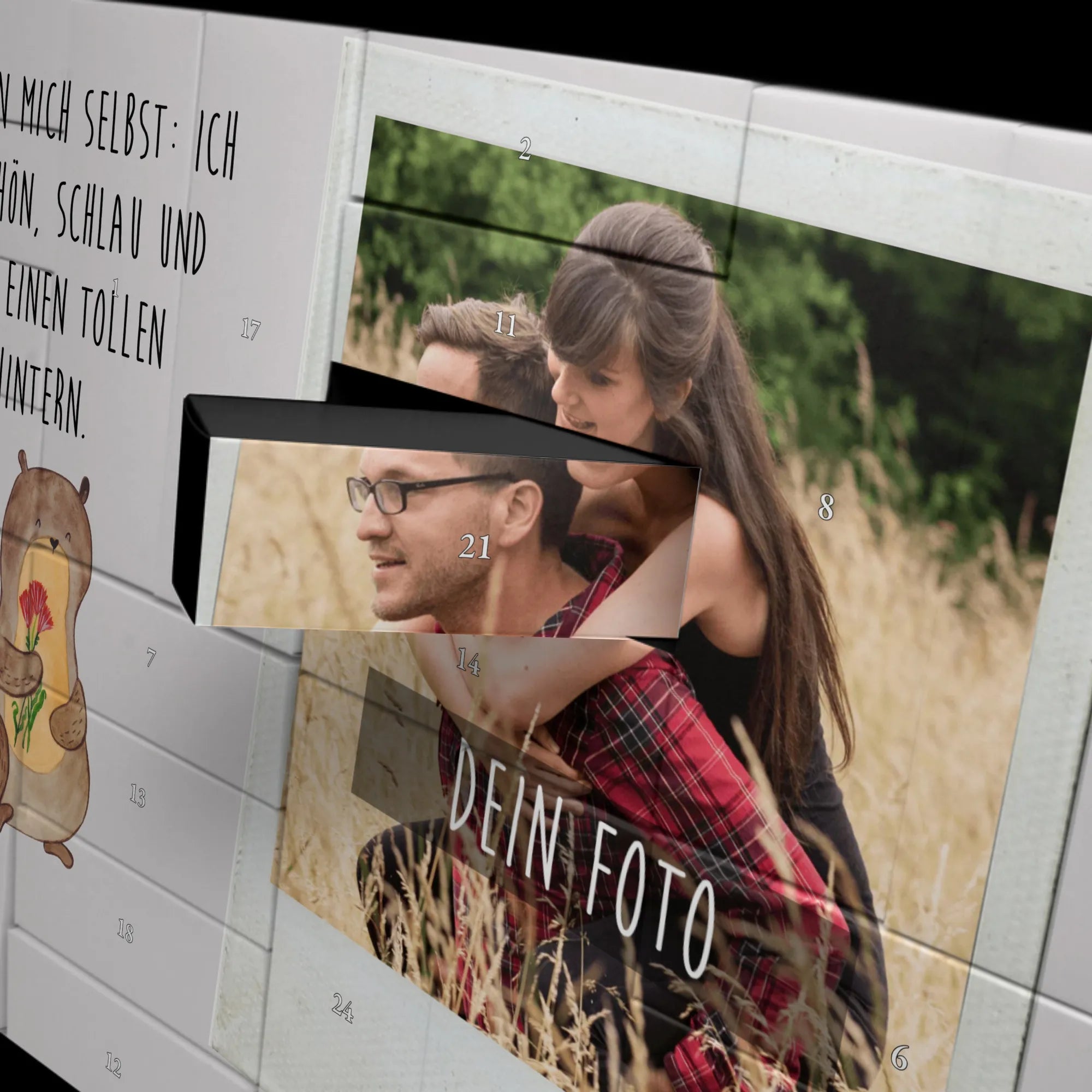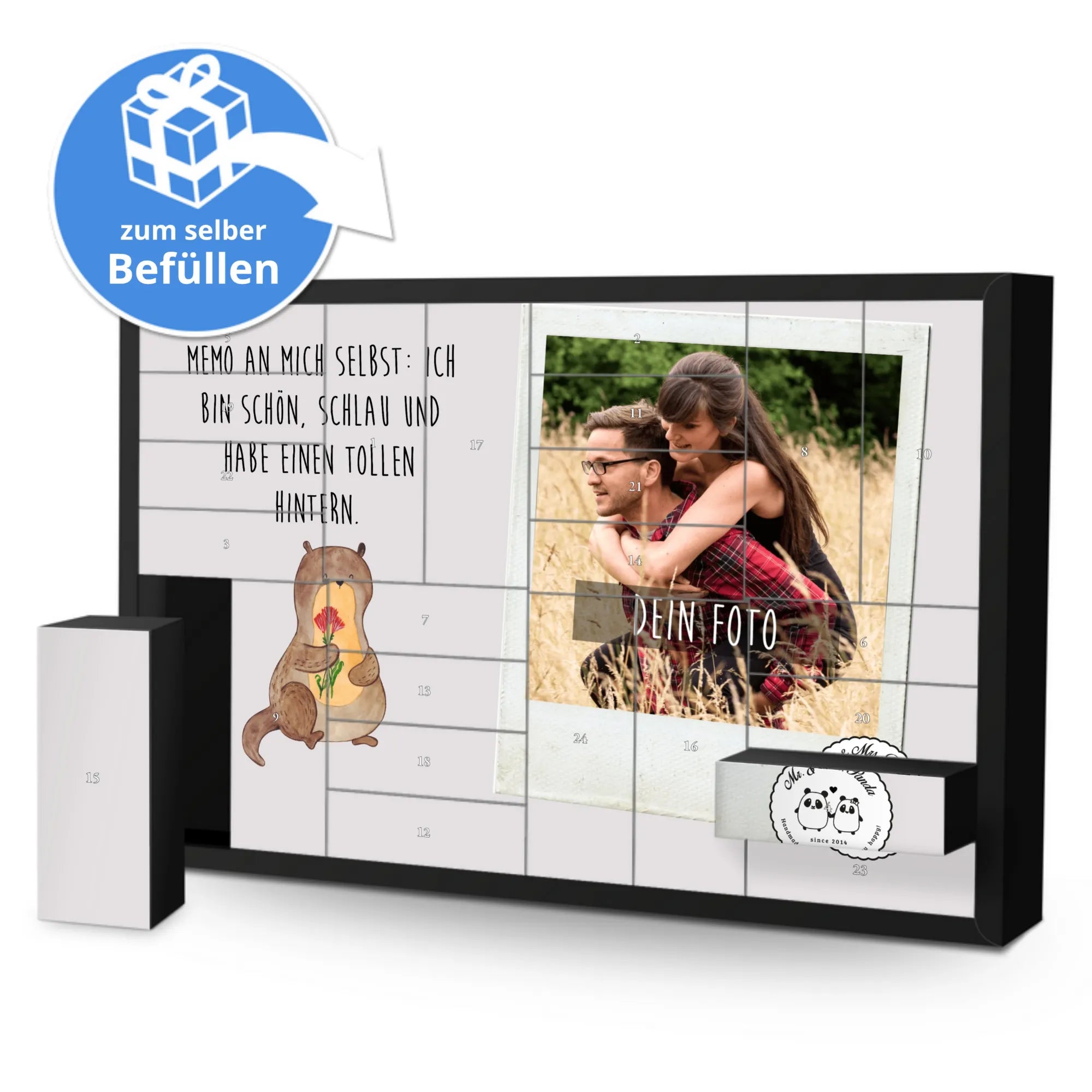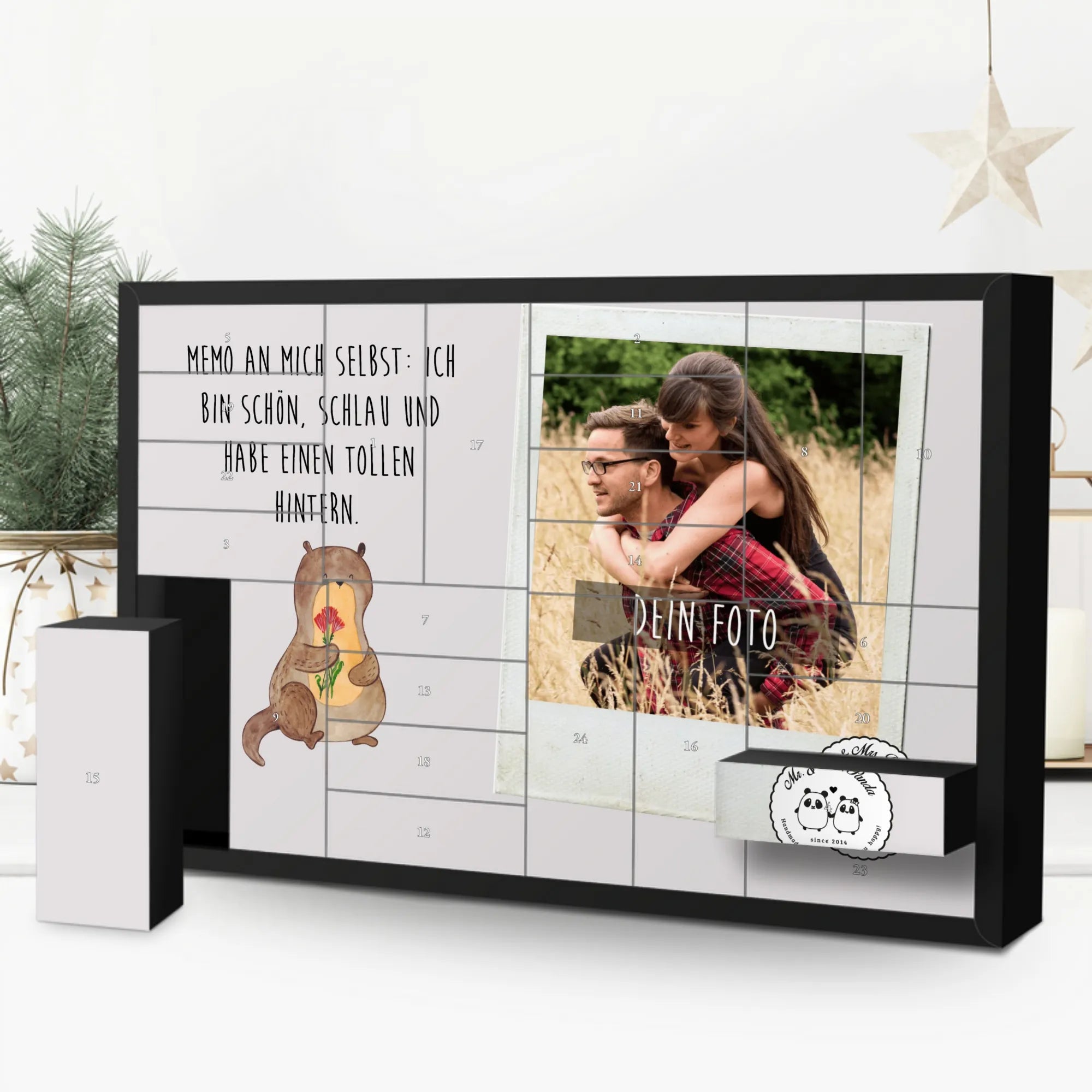 Turn the pre-Christmas season into a truly personal experience with the Personalized Fillable Photo Advent Calendar from Mr. & Mrs. Panda. This unique calendar not only allows you to fill it with your own sweets or small gifts, but also personalize it with a special photo. The photo is beautifully showcased thanks to brilliant print quality on a silk matte surface. Photo quality and selection guidelines ensure your image is optimally presented, while charming illustrations and sayings from Mr. & Mrs. Panda adorn the rest of the calendar.
