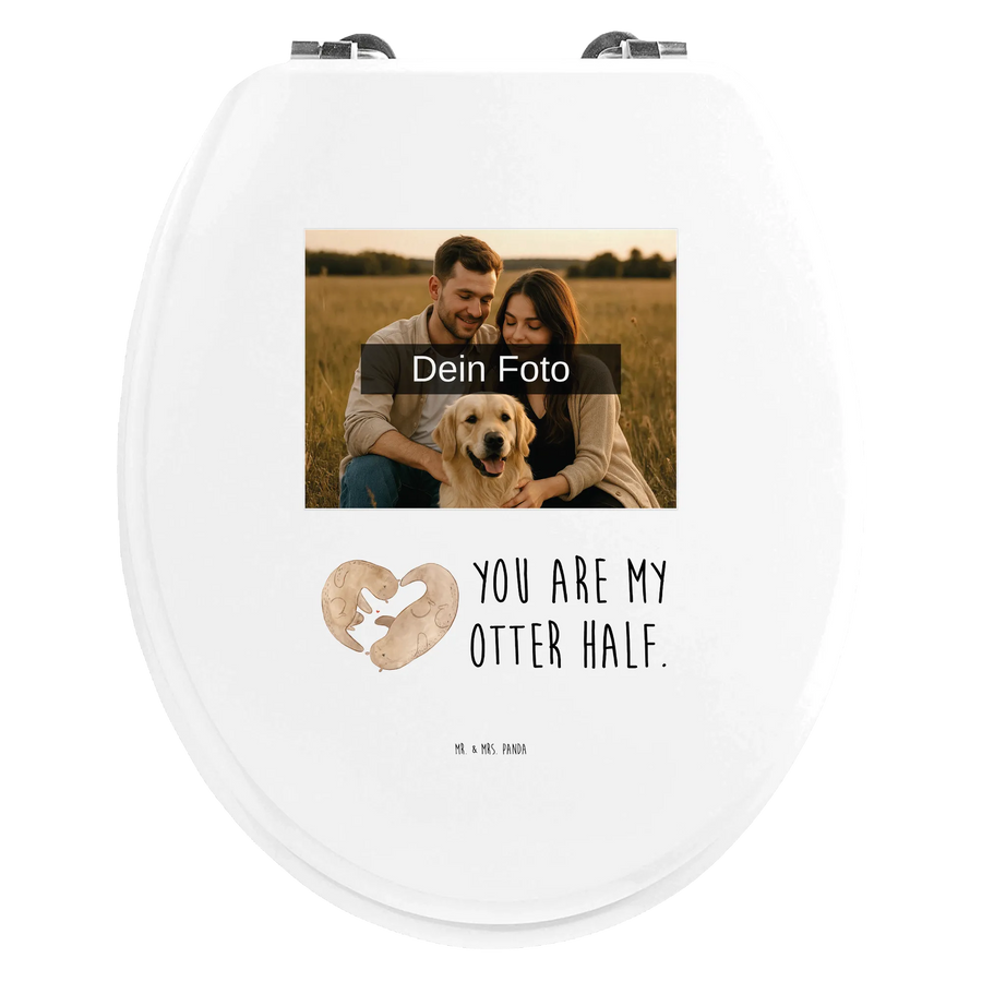 Personalisierter Foto WC Sitz Motiv Otter Herz - Hartfaser Holzkern Weiß