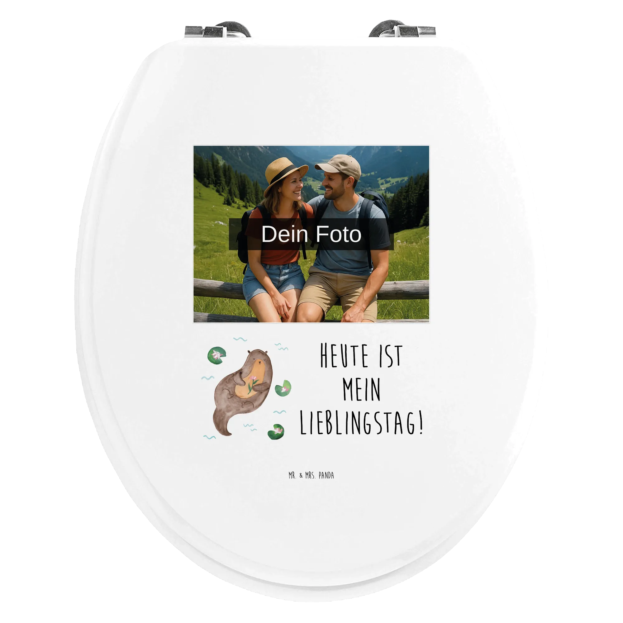 Personalisierter Foto WC Sitz Motiv Otter Seerose - Bambus