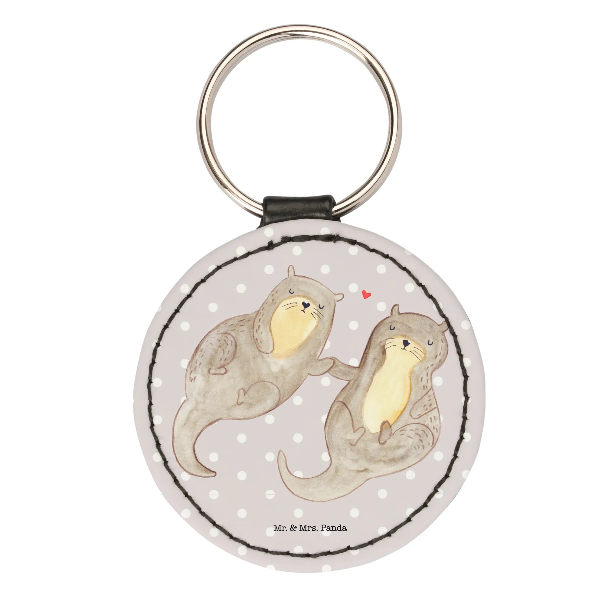 Measuring at a lovely 50 mm (2 inches) each side, this round key ring is made from exquisite premium synthetic leather, ensuring it’s not only soft to the touch but also durable for everyday wear. The unique design showcases two innocent otters floating serenely on their backs, holding hands as they glide through the water, reminding us that love can be simple yet profound. The artistic touch comes from the loving hand of Mrs. Panda, who carefully illustrates each character with vibrant watercolors.