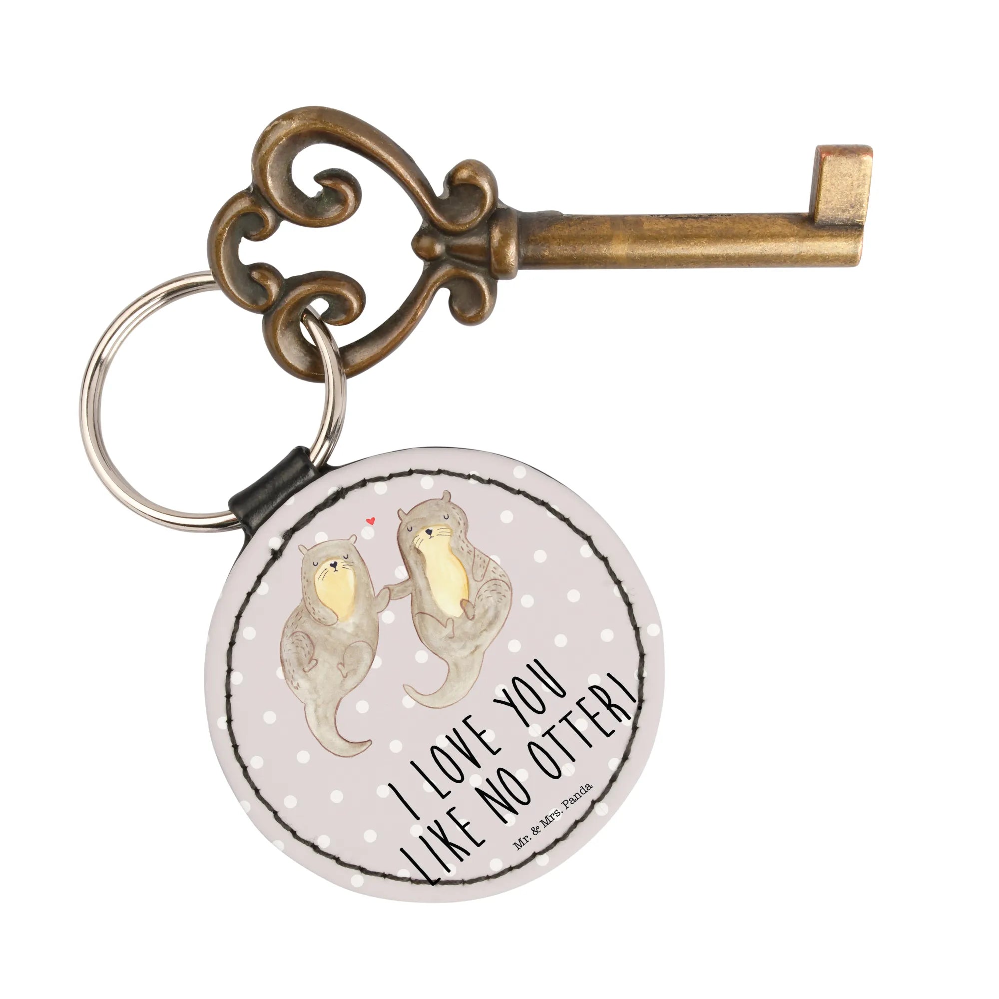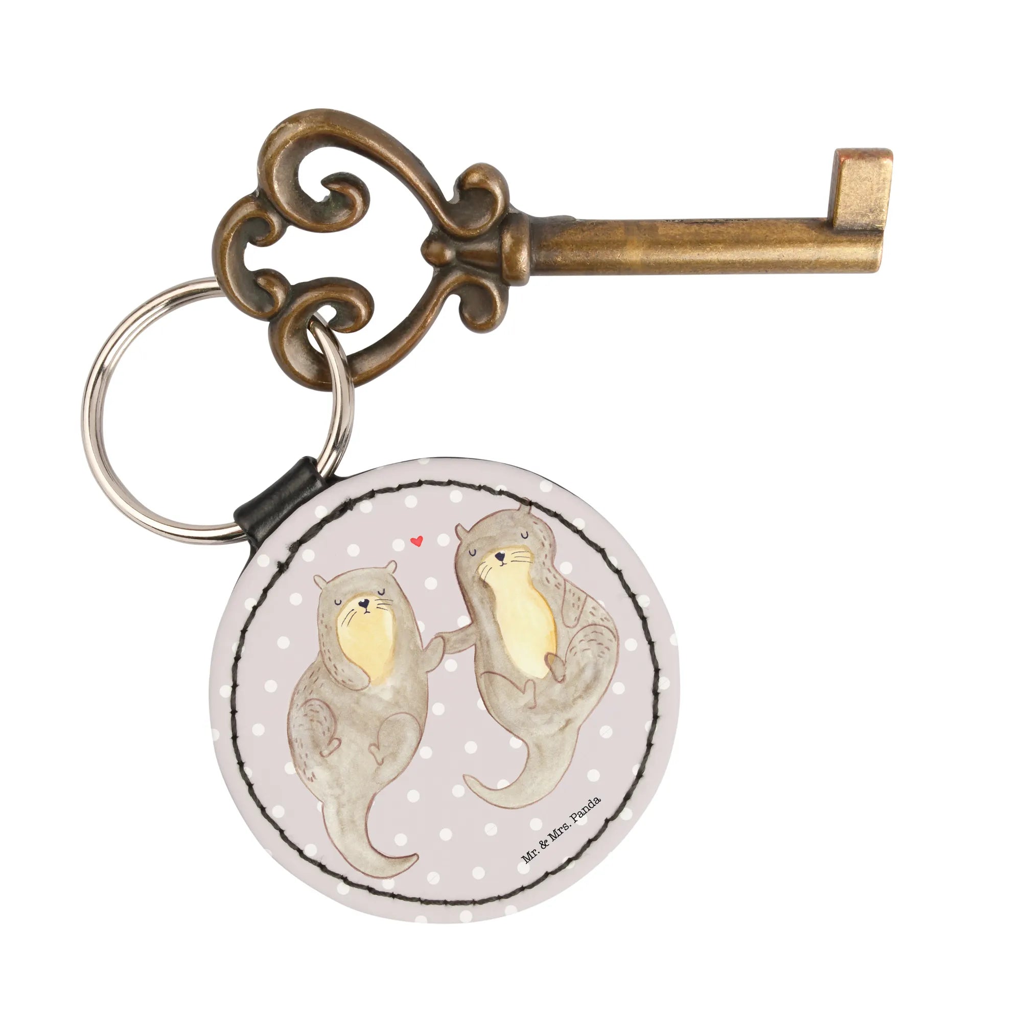 If you're searching for the perfect gift that captures the essence of love and cuteness, look no further than our Round Key Ring featuring two adorable otters holding hands!