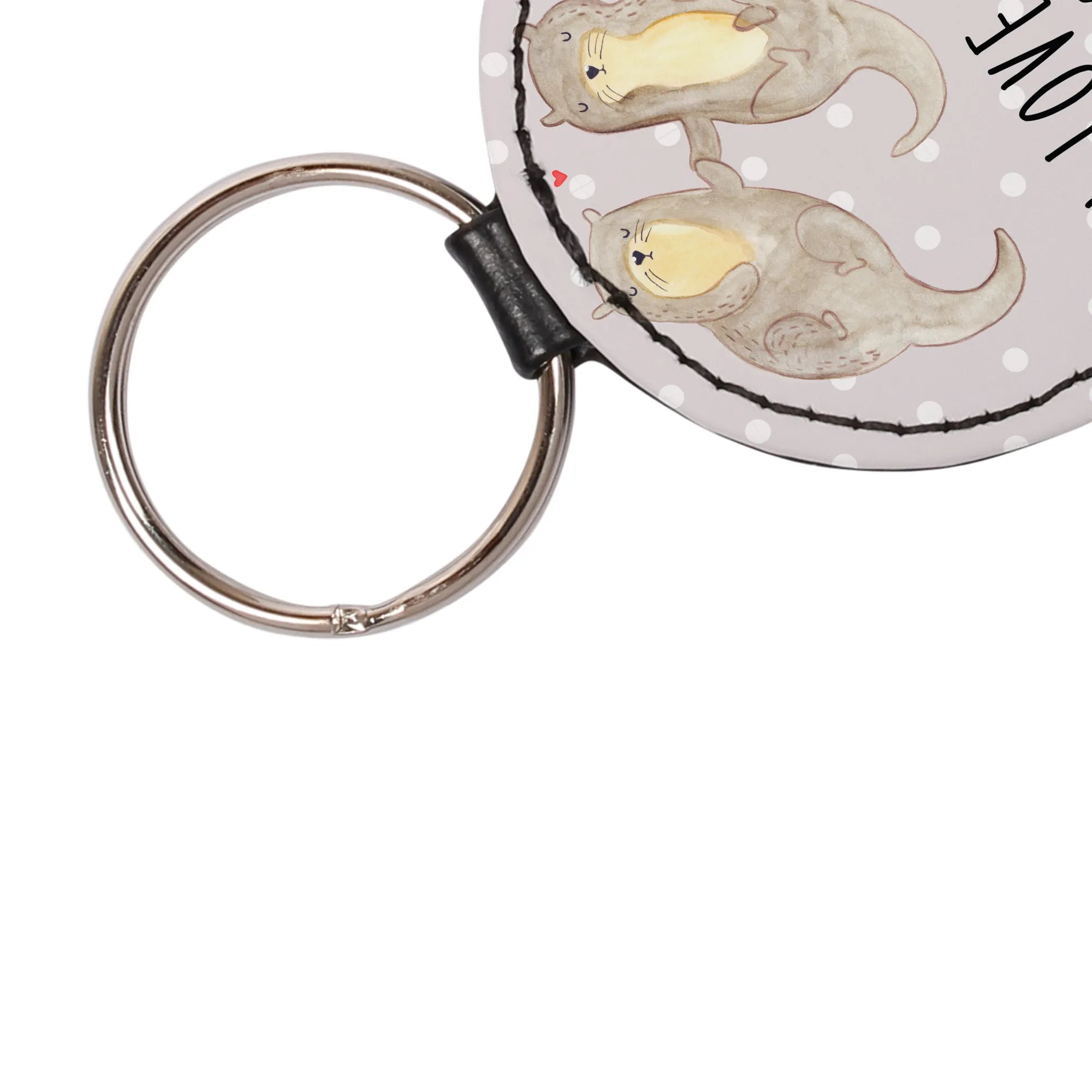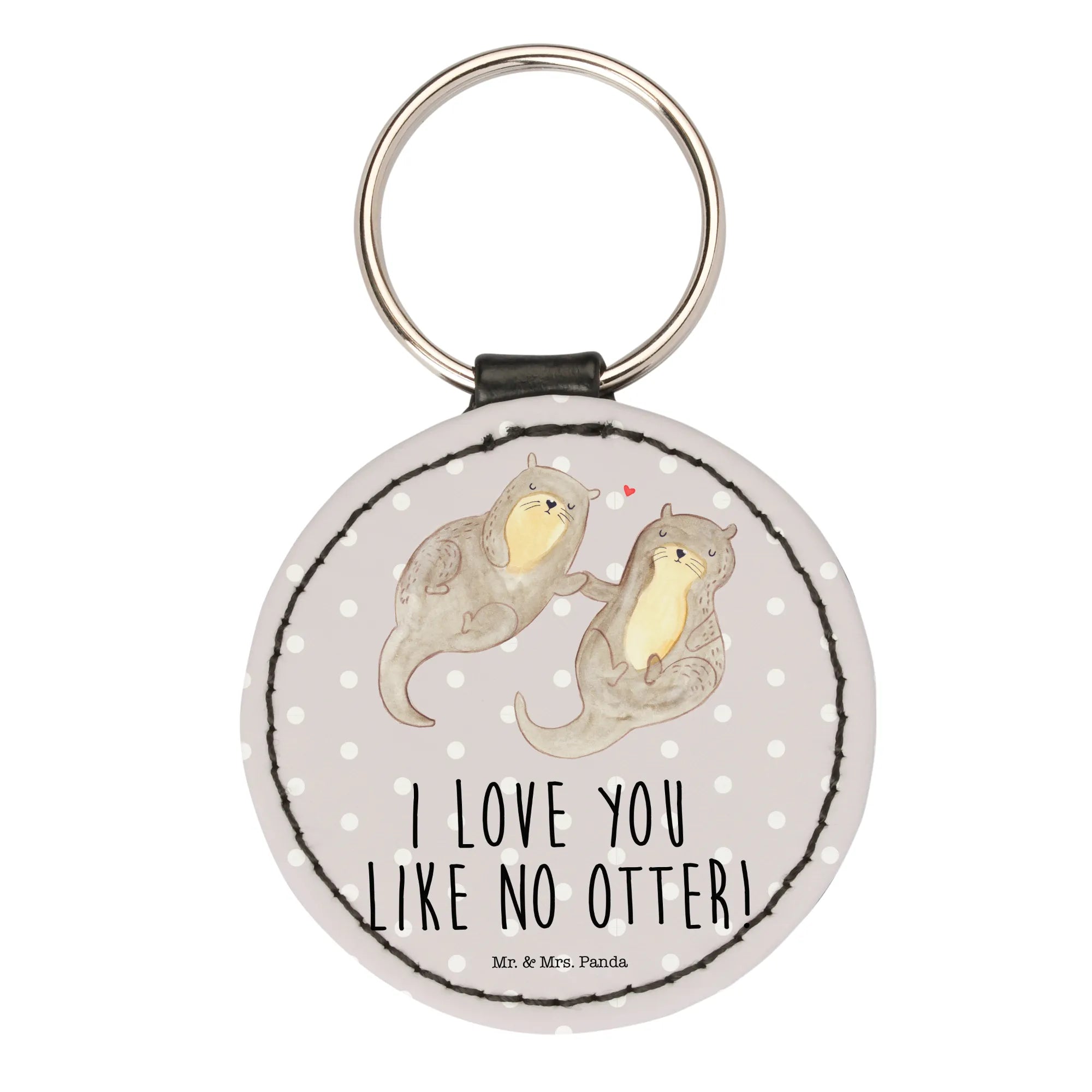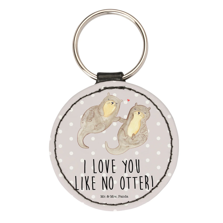 Round key ring otter holding hands - with a saying - Grey Pastel
