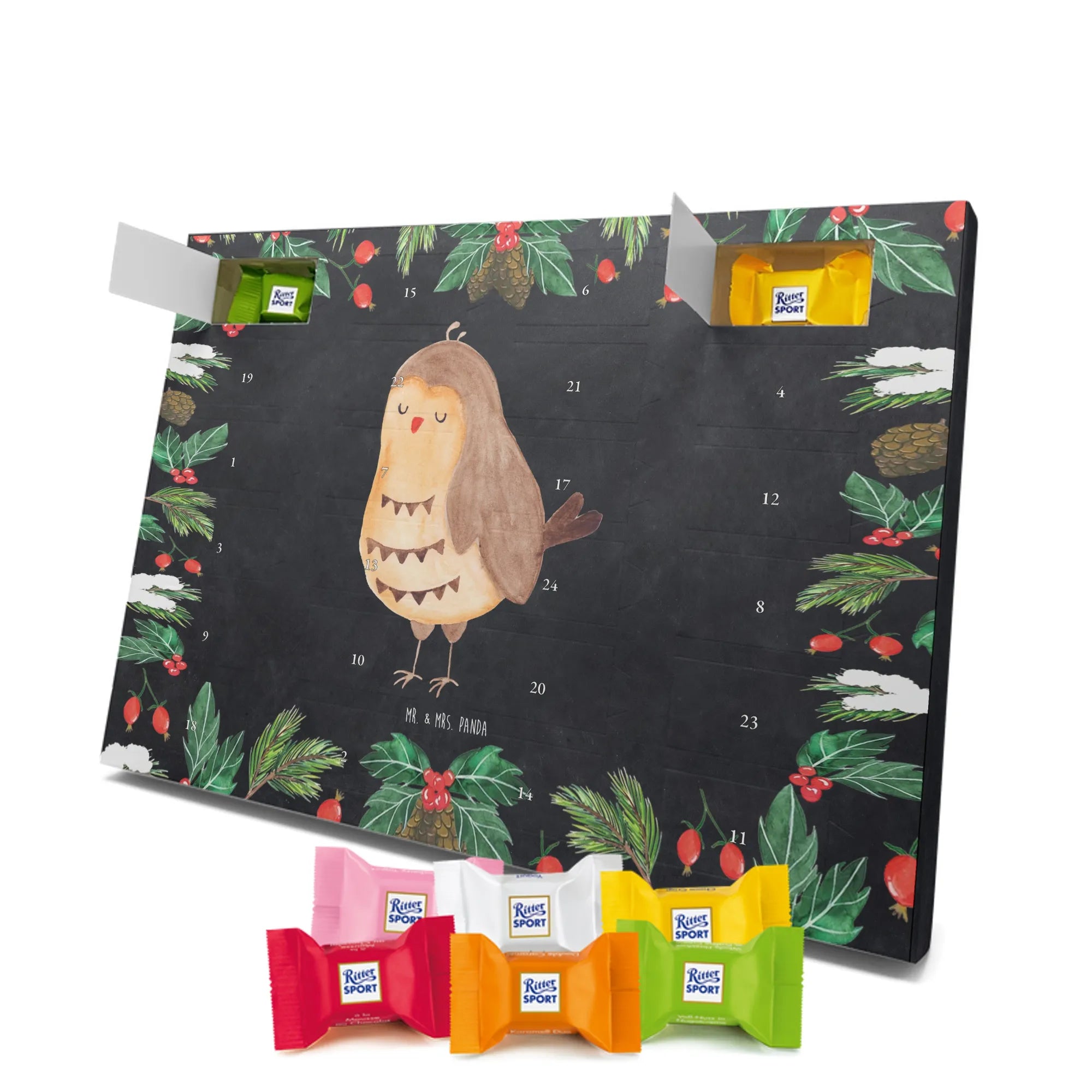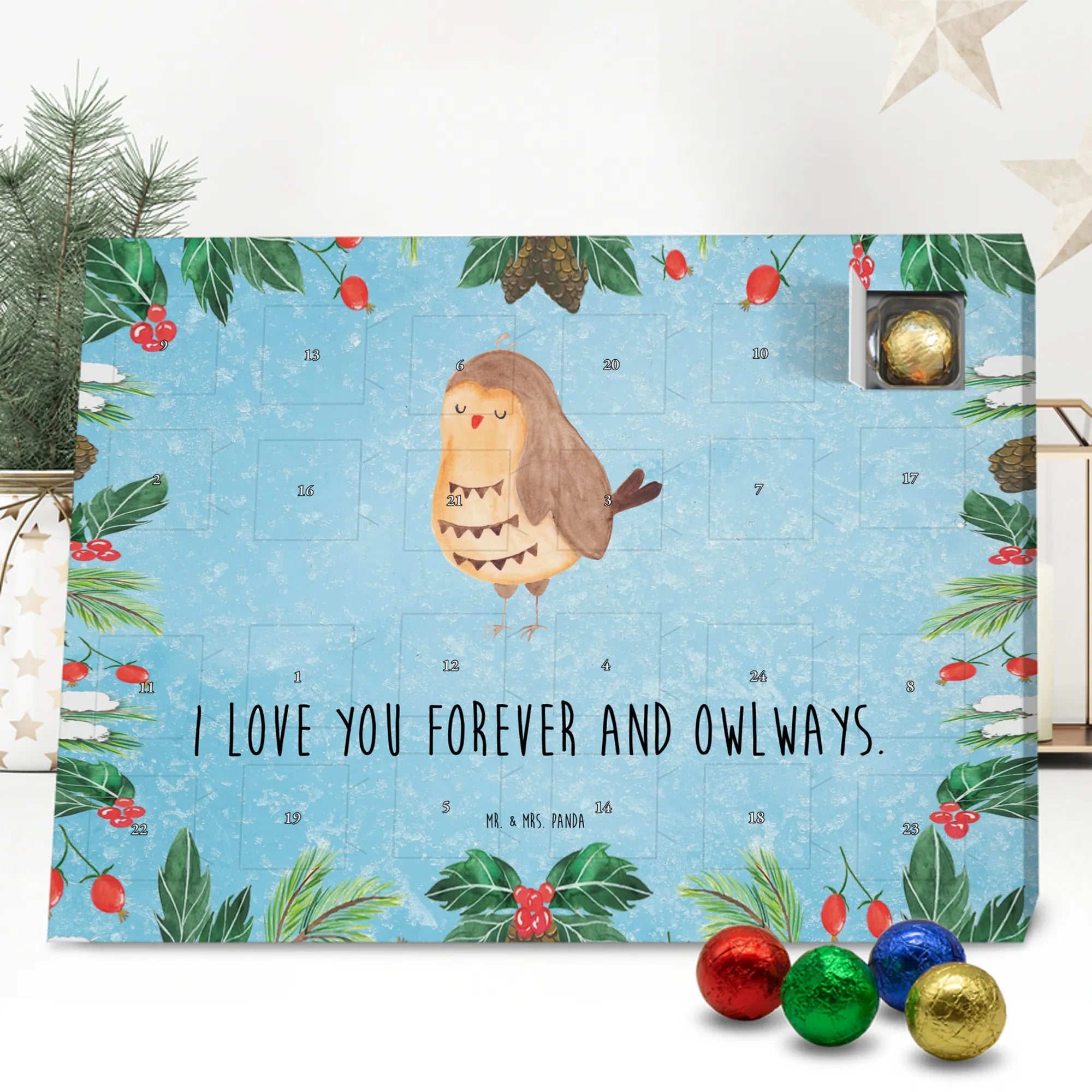 Chocolate advent calendar Owl Satisfied - Classic - with saying - Ice Blue