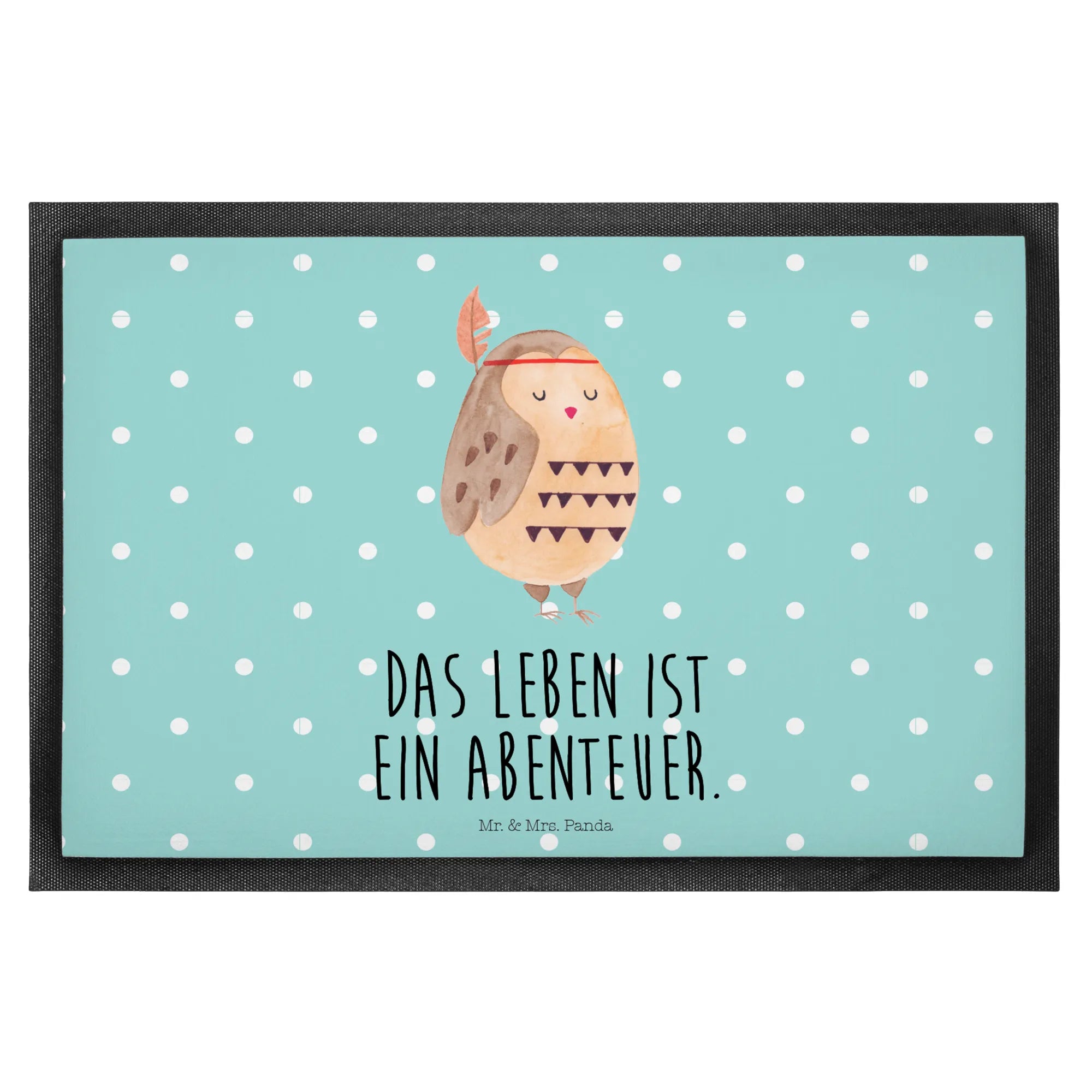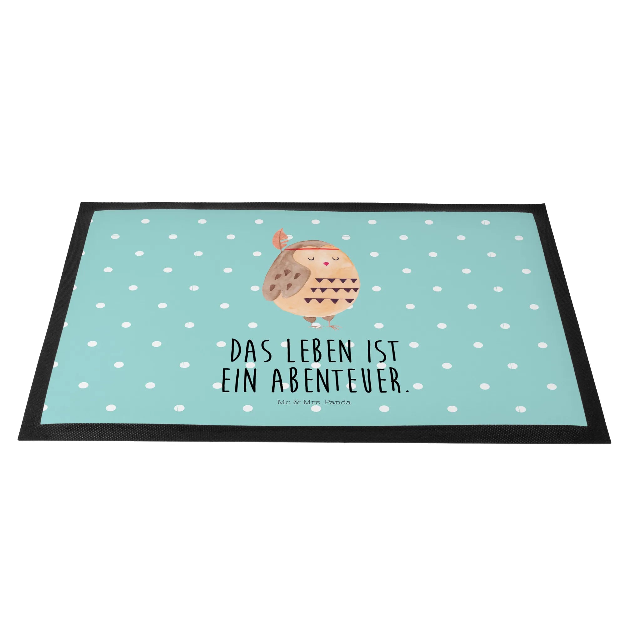 Doormat Owl feather headdress - 60 x 90 cm - with saying - Turquoise Pastel
