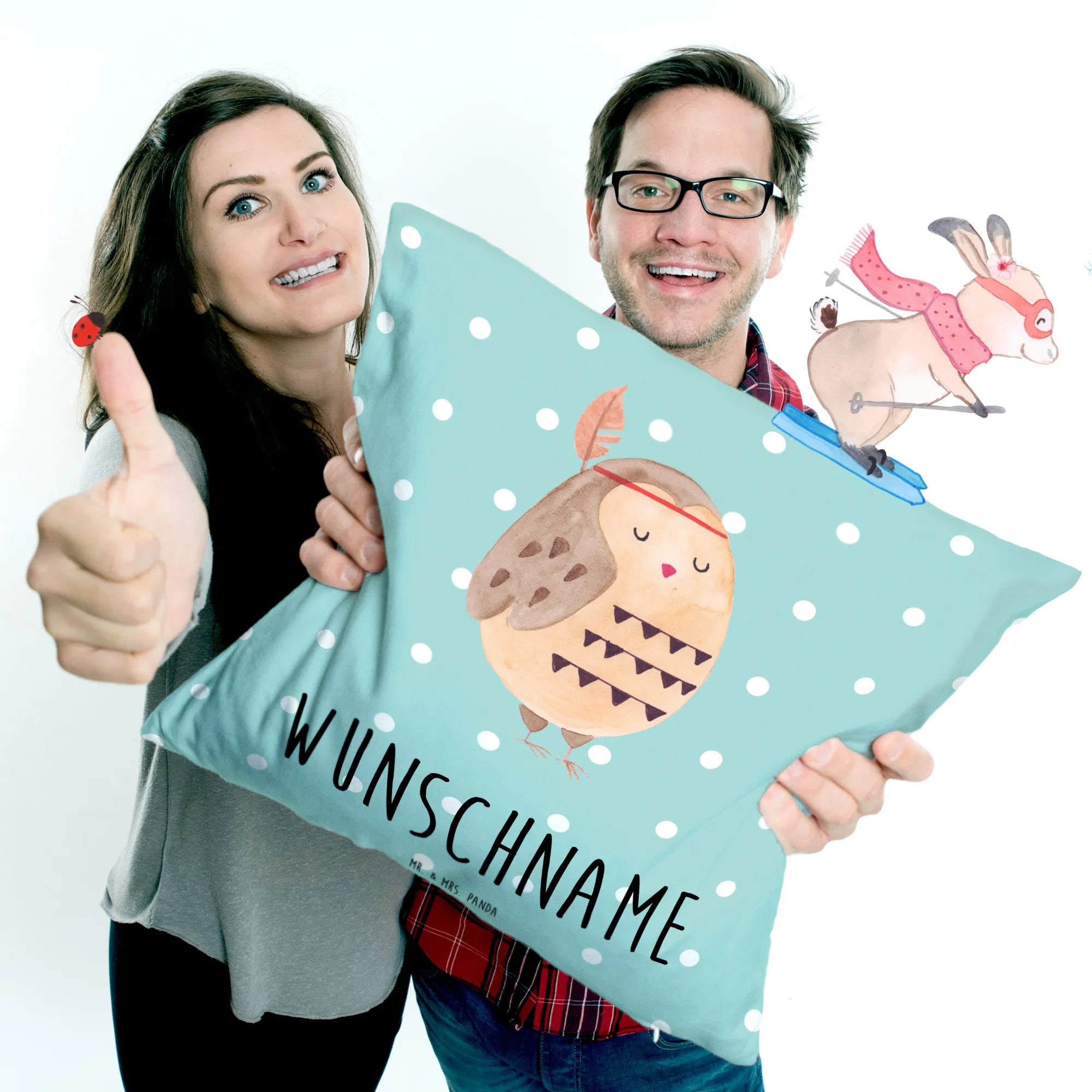 Personalised cushion Owl feather headdress – Mr. & Mrs. Panda