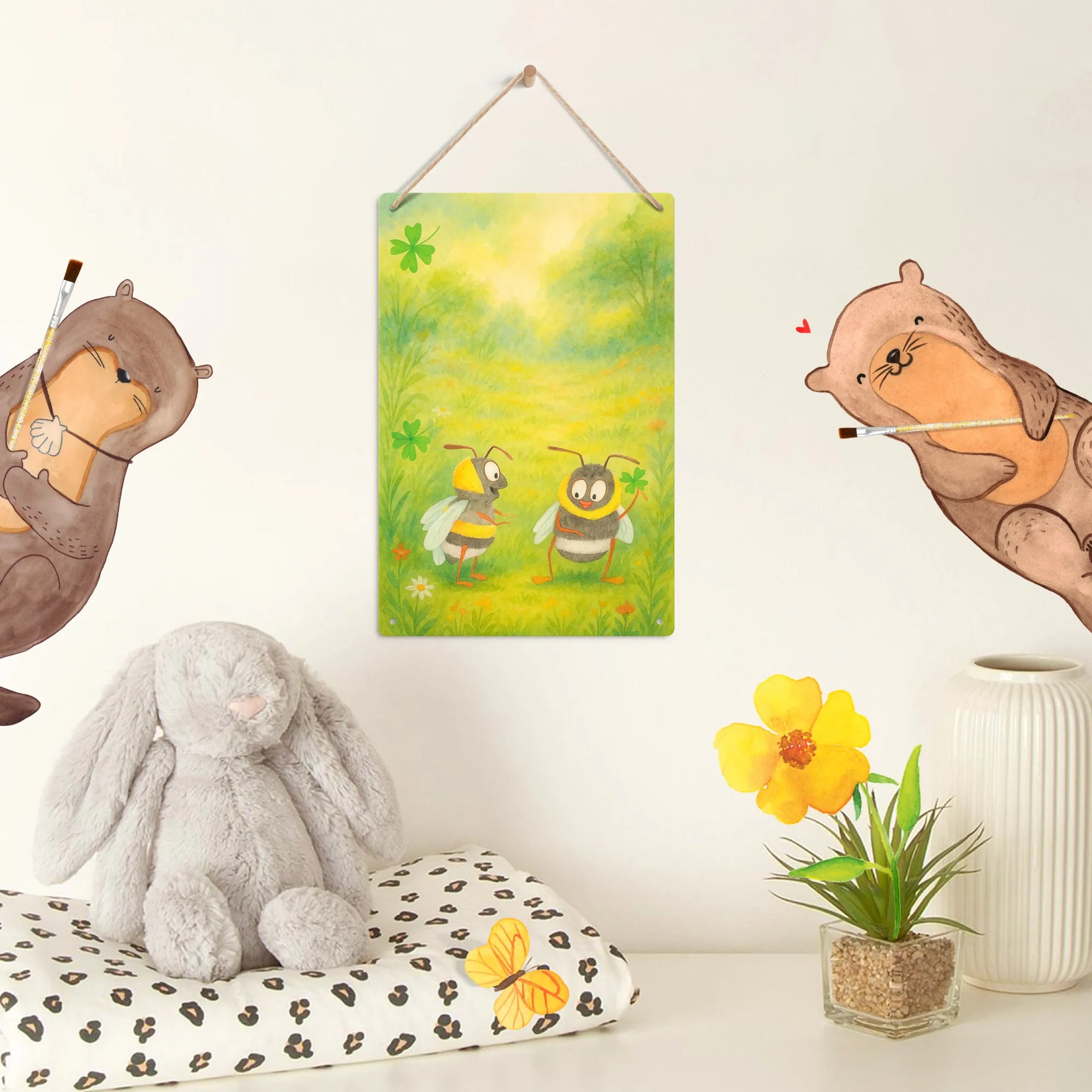 Here we have two delightful bumblebees blissfully hovering in front of each other, proudly holding a clover between them. This charming motif speaks volumes about the joy found in friends and nature. It promotes a beautiful saying that says, 'Be happy, become happy,' a perfect fit for any home seeking a little more positivity. The bumblebee represents industriousness and joy, while the lovely clover represents good fortune and a sense of nature's beauty. Hang this up in your living room or office space and feel its vibrancy fill your surroundings. It’s a thoughtful reminder that happiness isn’t just a destination, but a way of seeing the world. Let the playful spirits of these bumblebees inspire laughter, joy, and a sprinkle of magic in your life. So, let’s buzz through our days like these bees, ready to explore life with a heart full of delight.