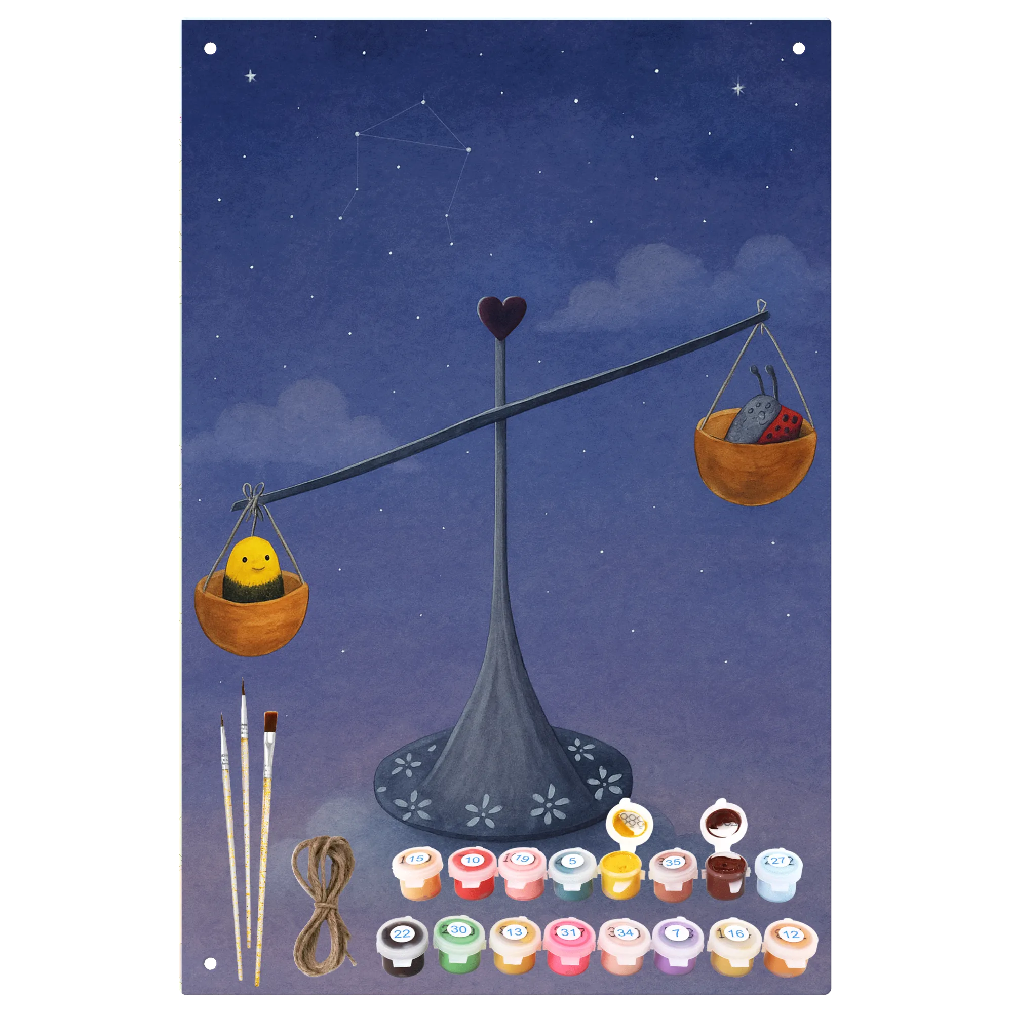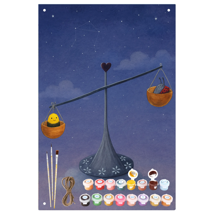 Introducing the captivating Libra motif, where balance meets creativity! Featuring a spirited ladybird and an industrious bumblebee on a classic scale, this design embodies the Libra zodiac sign's enchanting qualities of harmony and partnership. Perfect for birthdays in September and October, it makes a thoughtful Libra gift that reminds us of the beauty in our connections. The ladybird brings a sense of luck and light-heartedness, while the bumblebee symbolizes diligence and community—the perfect combination for celebrating the relationships we cherish. It's a delightful visual reminder that life is about finding that sweet spot between different energies, inviting us to appreciate the unique roles we each play. Whether adorning a cozy corner of your home or given as a loving gift, this motif inspires positivity and balance in everyday life. Let it remind you to take a moment to pause, reflect, and enjoy the harmony that surrounds you. Let this charming artwork bring joy and warmth into your space and celebrate the Libra spirit every day.