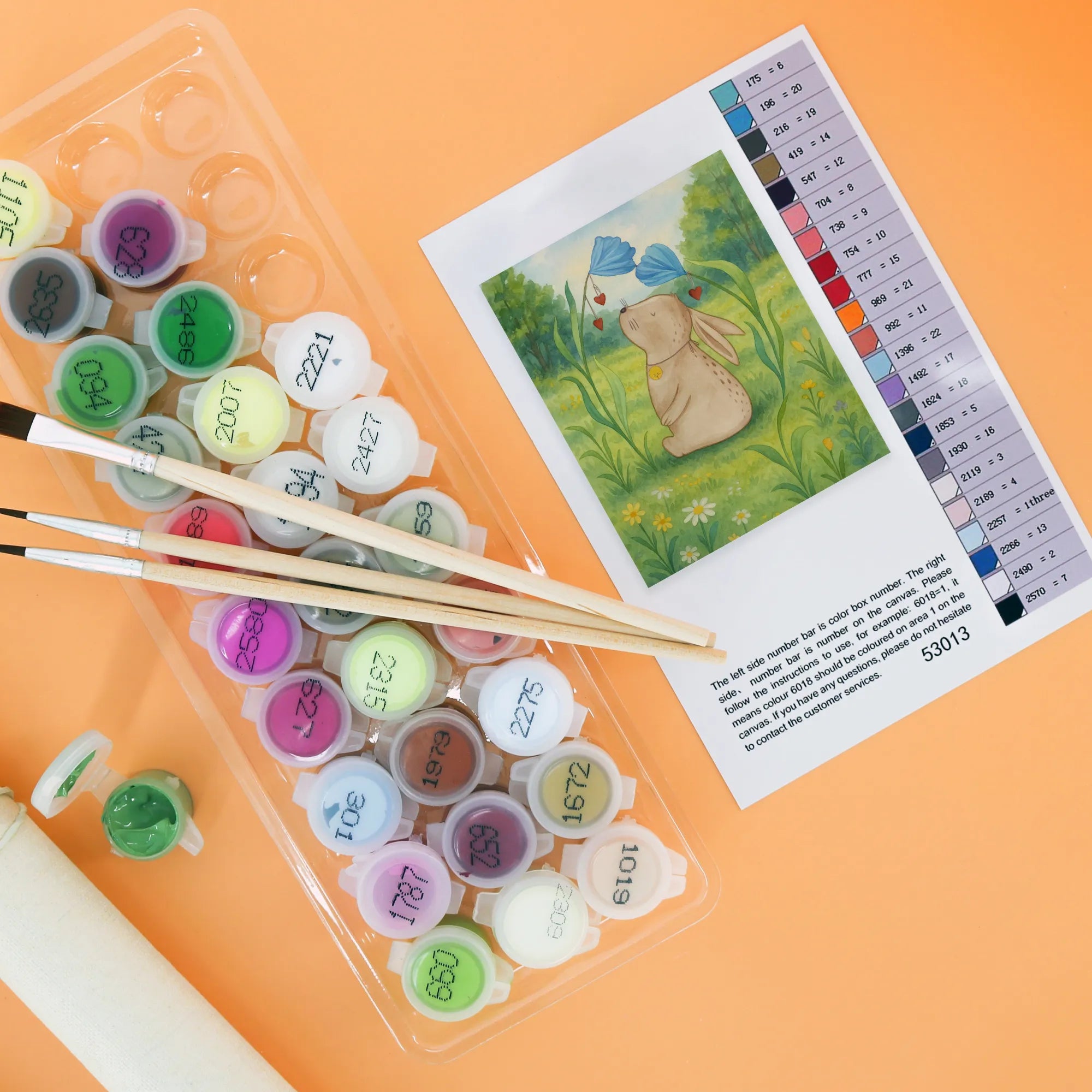 Malen nach Zahlen Hase Blume Design - Ohne Rahmen - 24 Farben (Standard)