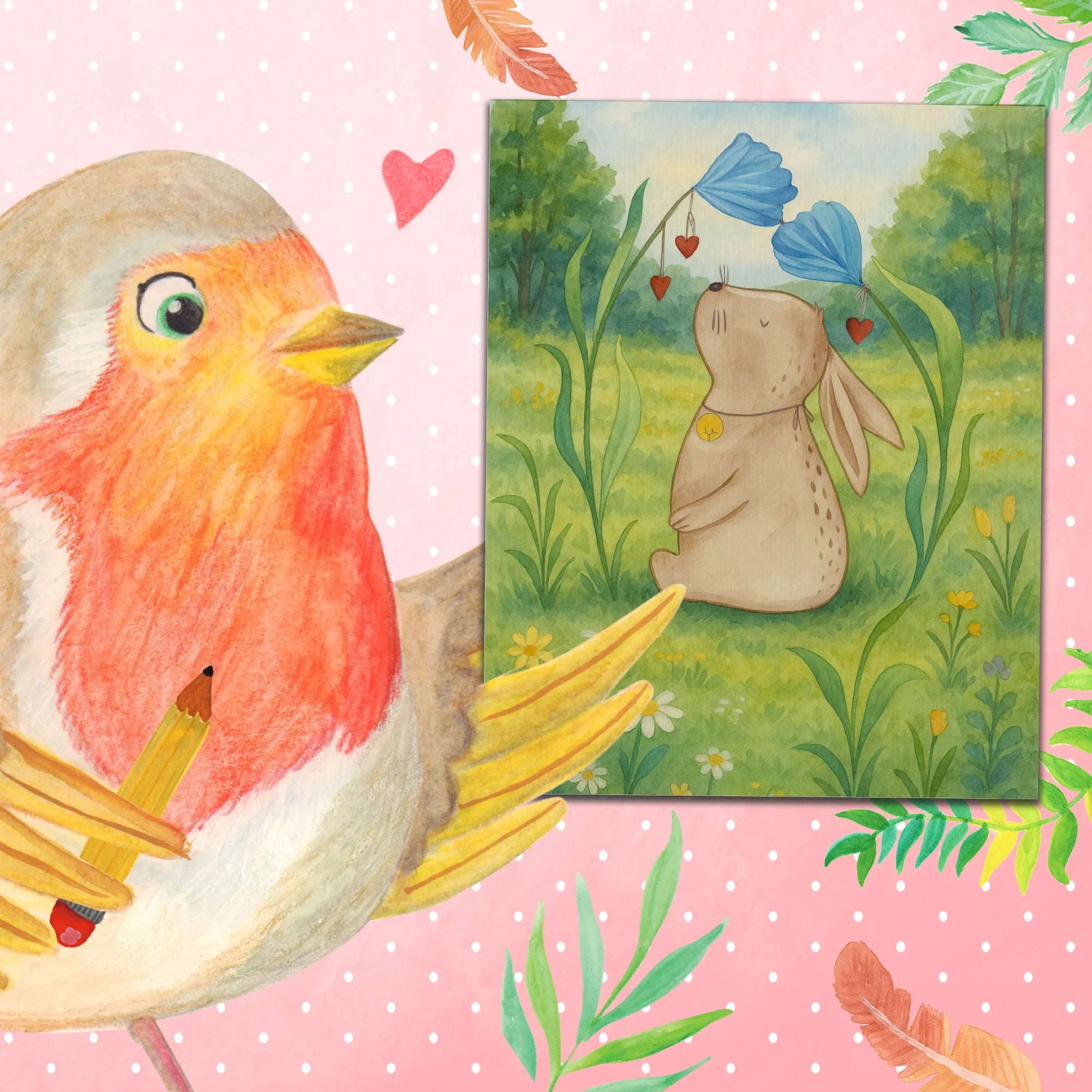Entdecke den Hase Blume, der mit seiner verspielten Art die Herzen aller kleinen Entdecker höher schlagen lässt! Mit einem Glöckchen geschmückt, sitzt dieser fröhliche Hase zwischen farbenfrohen Blumen, die das Abenteuer und die Freude am Entstehen symbolisieren. Das Design ist nicht nur eine bezaubernde Dekoration für das Kinderzimmer, sondern auch ein wertvolles Andenken zu besonderen Anlässen wie Taufen oder zur Geburt des ersten Kindes. Es erfüllt uns mit Hoffnung und erzählt von den Träumen, die wir für unsere Kleinen haben. Egal ob fürs erste Kindergeburtstagsfest oder einfach nur zum Anschauen – dieser Hase wird zum treuen Begleiter für jedes Kind. Seine strahlenden Farben und die verspielte Ausstrahlung machen ihn zu einem perfekten Geschenk für junge Familien. Lass diesen Liebling in deinem Leben Einzug halten und fühle die Wärme und Liebe, die er mit sich bringt!