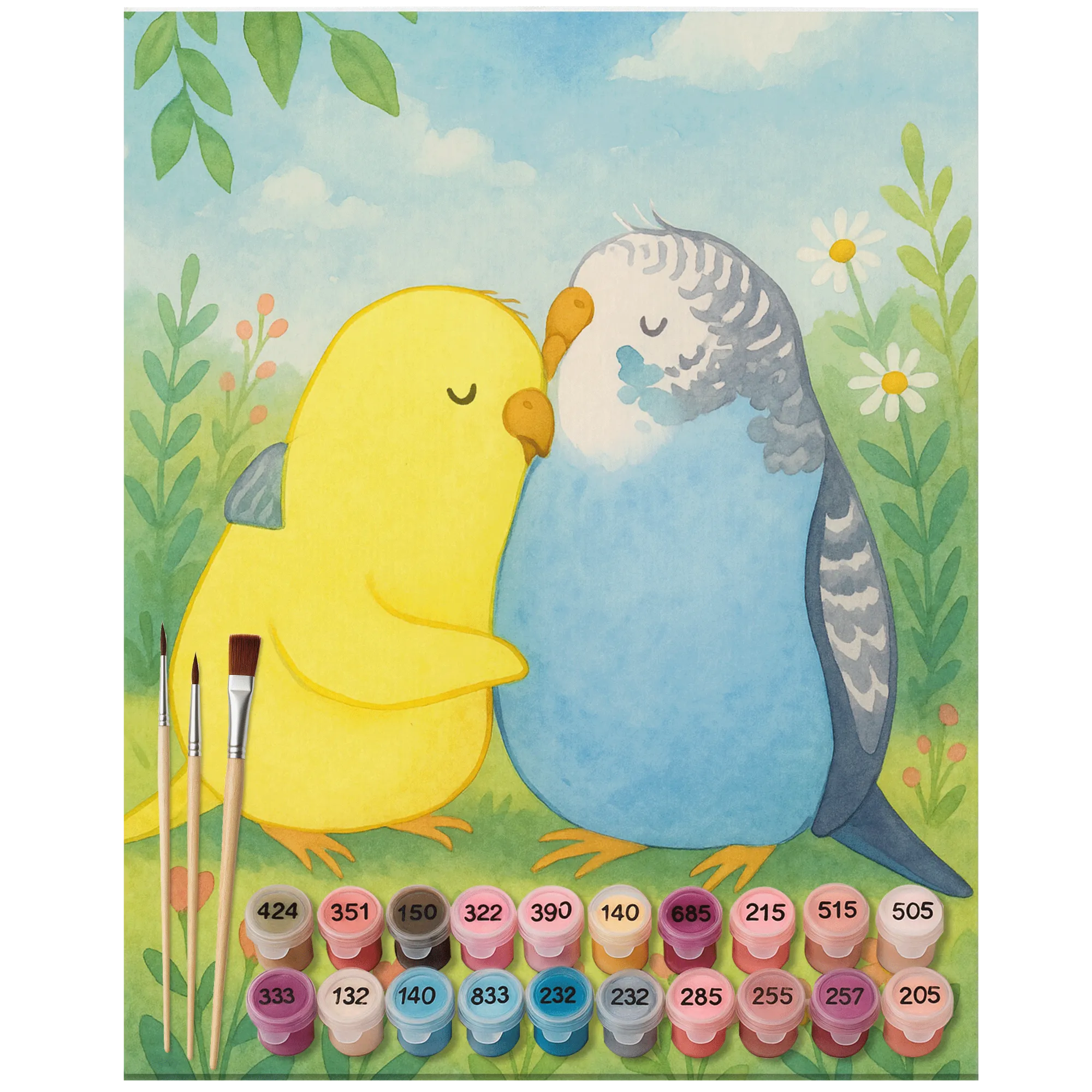 Malen nach Zahlen Wellensittich Liebe Design - Ohne Rahmen - 24 Farben (Standard)