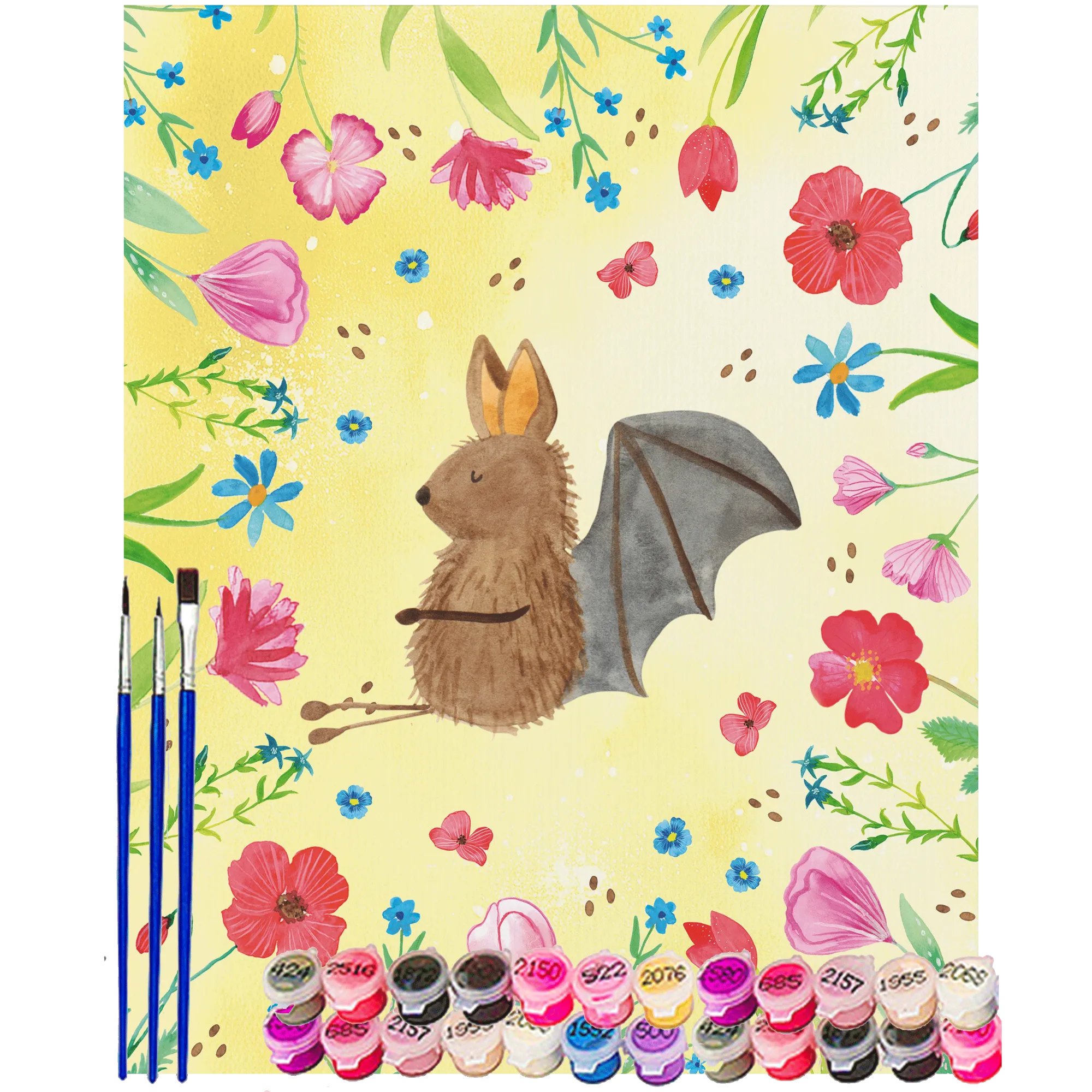Measuring 40 x 50 cm, this painting kit is just the right size to fit perfectly on your wall or as a gift for a friend. It’s ideal for gifting on occasions like birthdays, holidays or simply as a surprise for someone special who adores cute animals. Wrapped in sturdy packaging, the Paint by Numbers Sitting Bat set arrives ready for you to embark on your artistic journey.