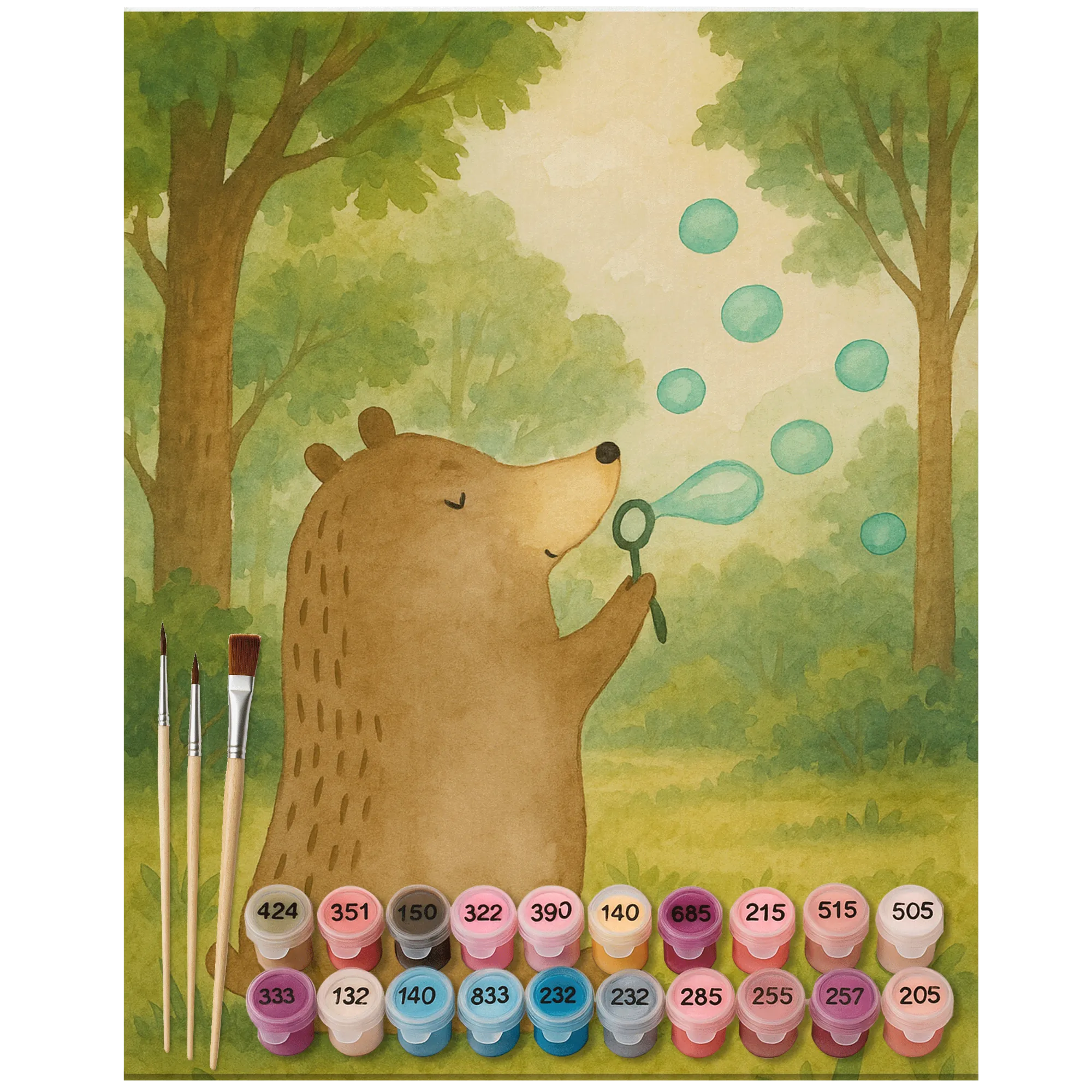 Paint by Numbers bear soap bubbles Design - Without frame - 24 Colors (Standard)