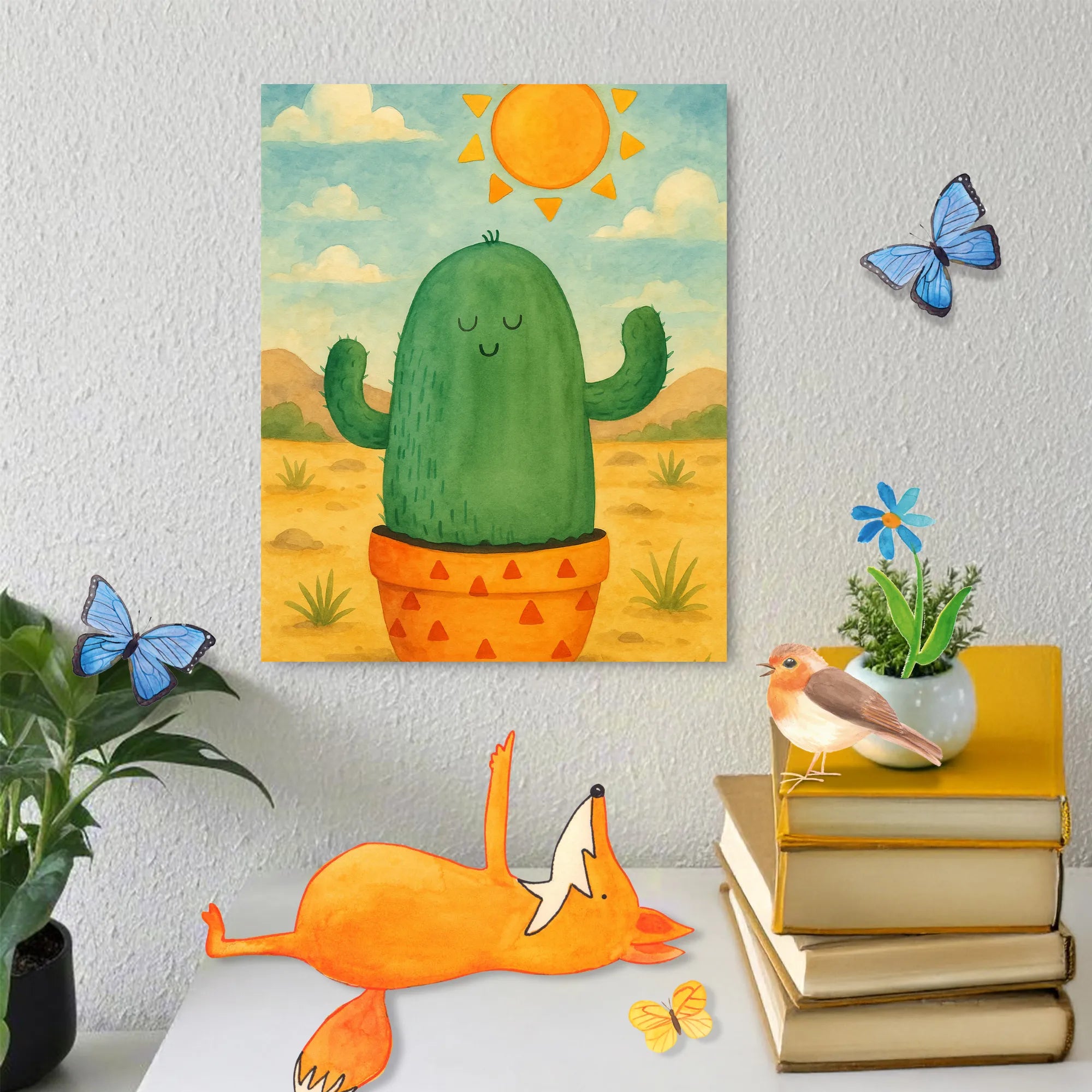 Here's a little cactus that radiates positivity, a true sun worshipper! This charming plant is not just a decoration, but a symbol of resilience and happiness. Life can bring its share of trials, from separation to lovesickness, but just like our cactus, we can stand tall and reach for the sun. This motif serves as a reminder that even when things get tough, there's always a bright side waiting for us. When you're looking for a gift that spreads sunshine, this happy cactus is a perfect choice. It's a way to tell a friend or loved one, 'Hey, you've got this!' So why not encourage someone to embrace their own journey with this lovely cactus art?
