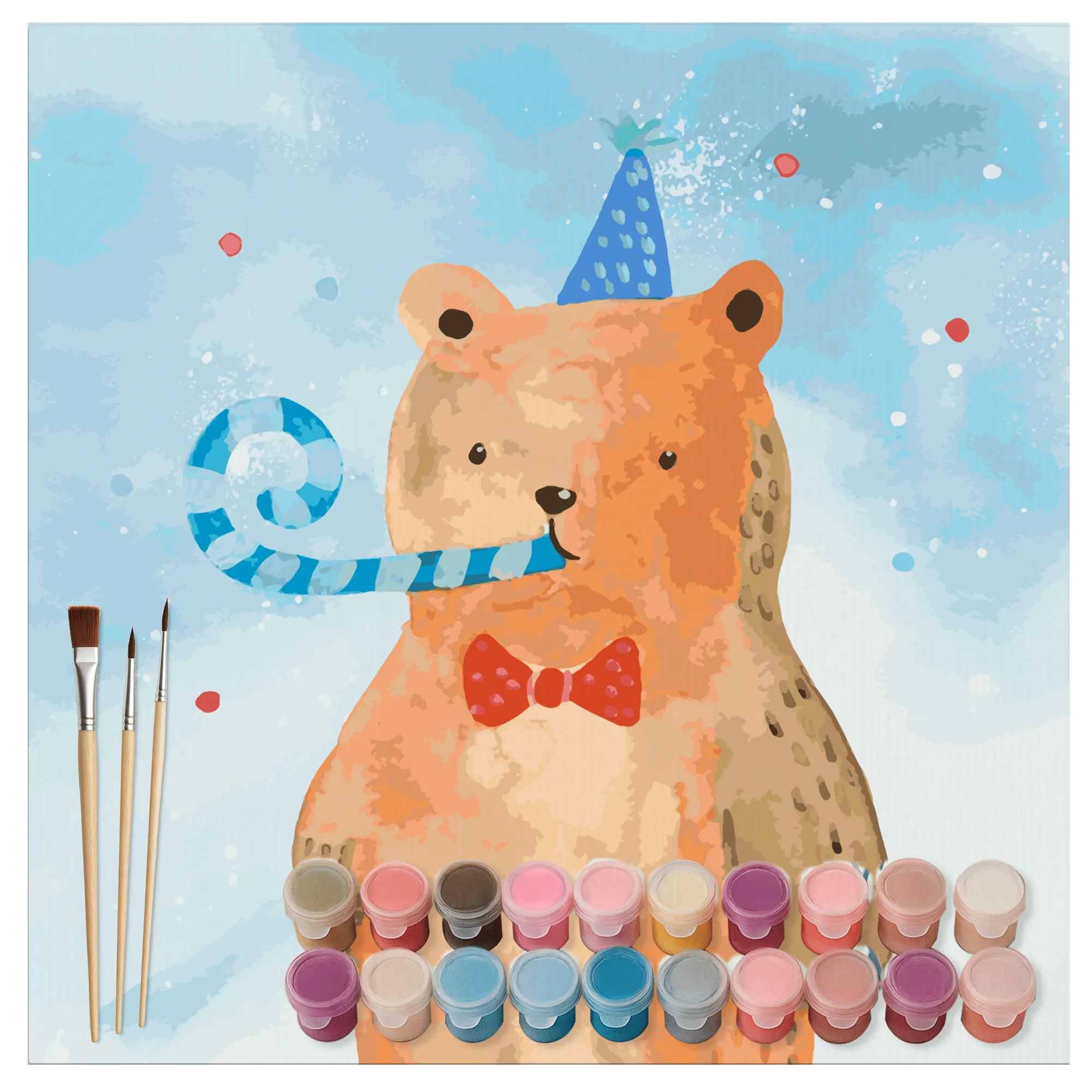 Paint by Numbers cut off bear Birthday Motiv - Without frame - 36 colors (High resolution)