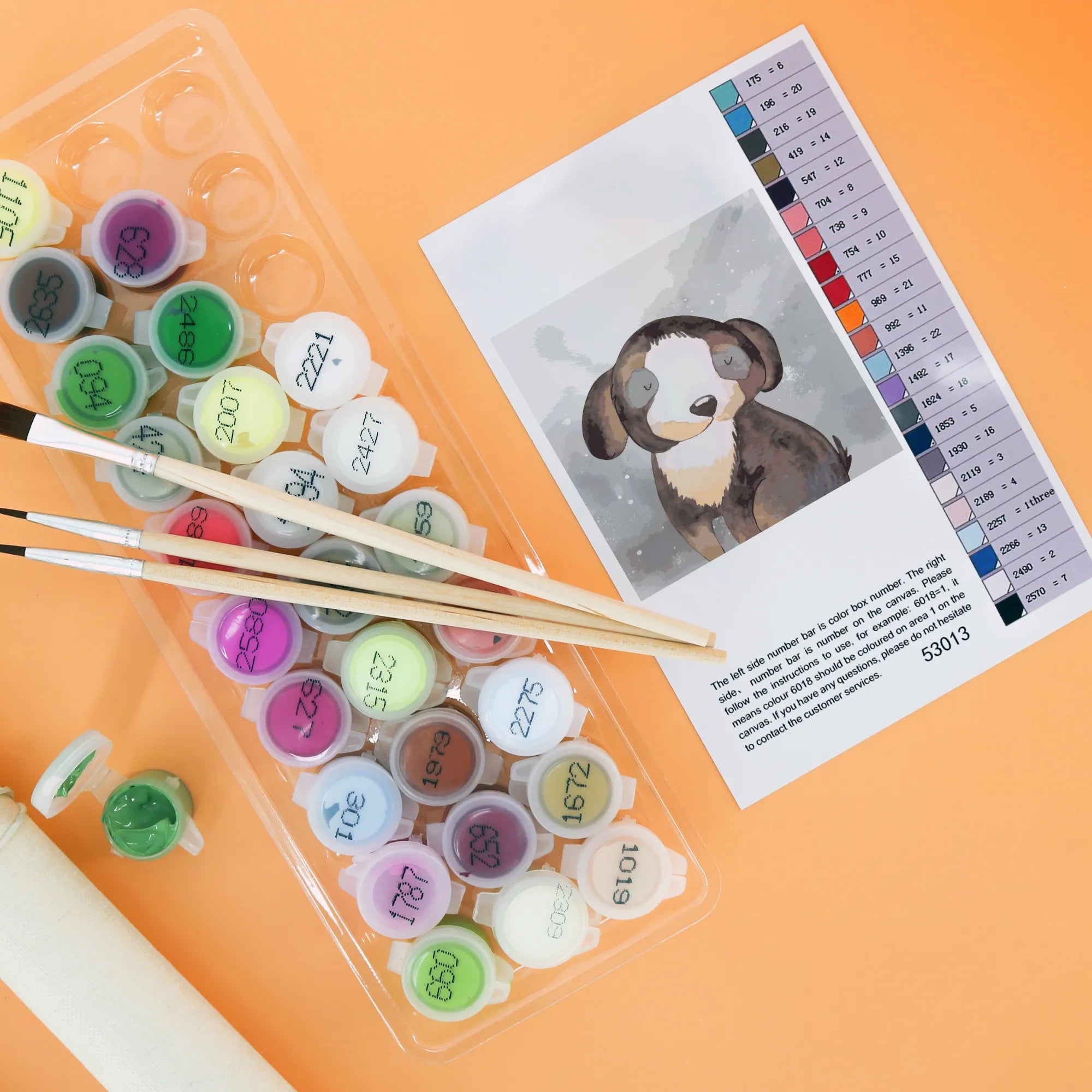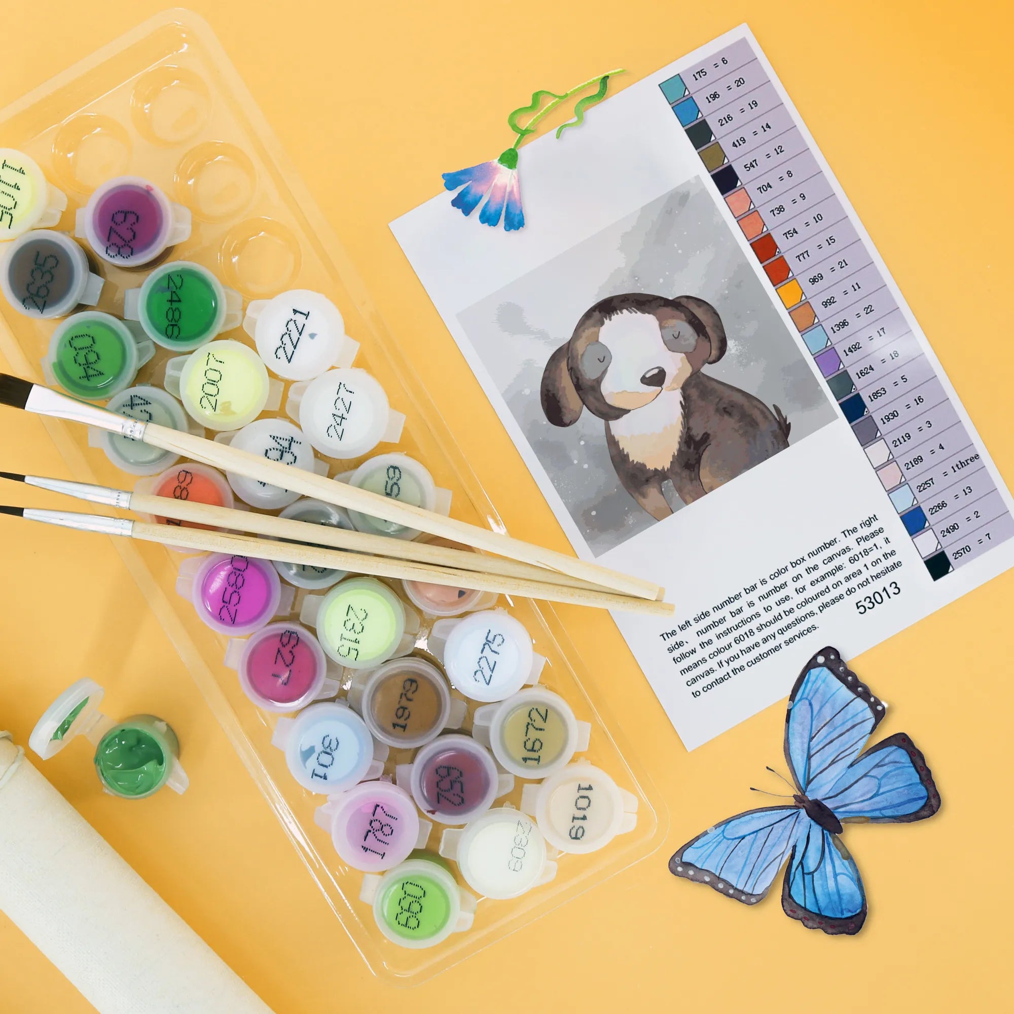 Crafted with love, this Paint by Numbers kit includes everything you need to express your artistic side. With 24 vibrant, high-quality acrylic paints and three durable brushes, you can unleash your inner artist while letting your imagination run wild. The colors are designed to have a perfect luminosity, ensuring your finished artwork stands out beautifully. Not only does this kit provide a creative outlet, but it also makes for an unforgettable gift for dog lovers!