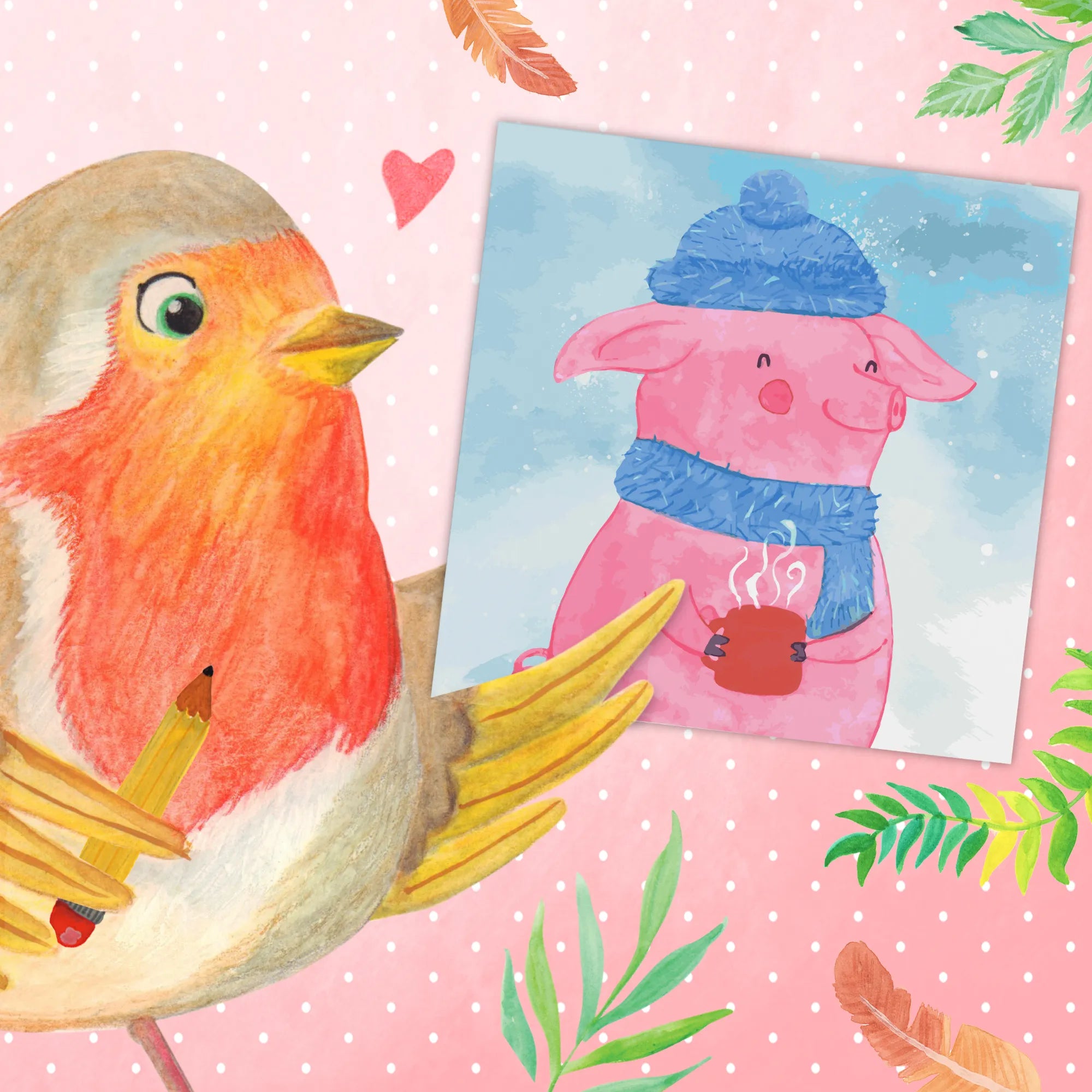 Bursting with holiday spirit, our charming piglet is ready for winter fun! Warmly dressed in a blue scarf and beanie, he cradles a cup of mulled wine that steams in the chilly air. His joyful grin reflects the happiness we find at Christmas markets, where laughter and warmth abound. This little cutie is not just a pig; he’s a symbol of all the cozy moments we share during this magical season. With every sip of mulled wine, he reminds us to cherish togetherness and embrace the simple joys that come with it. 'Let's drink to the moments that matter,' he'd say if he could. As he stands against the cold backdrop, our mulled pig invites you to join him in celebrating friendship, laughter, and those heartwarming gatherings we all look forward to. So grab a cup, raise it high, and toast to the happiness that winter brings!