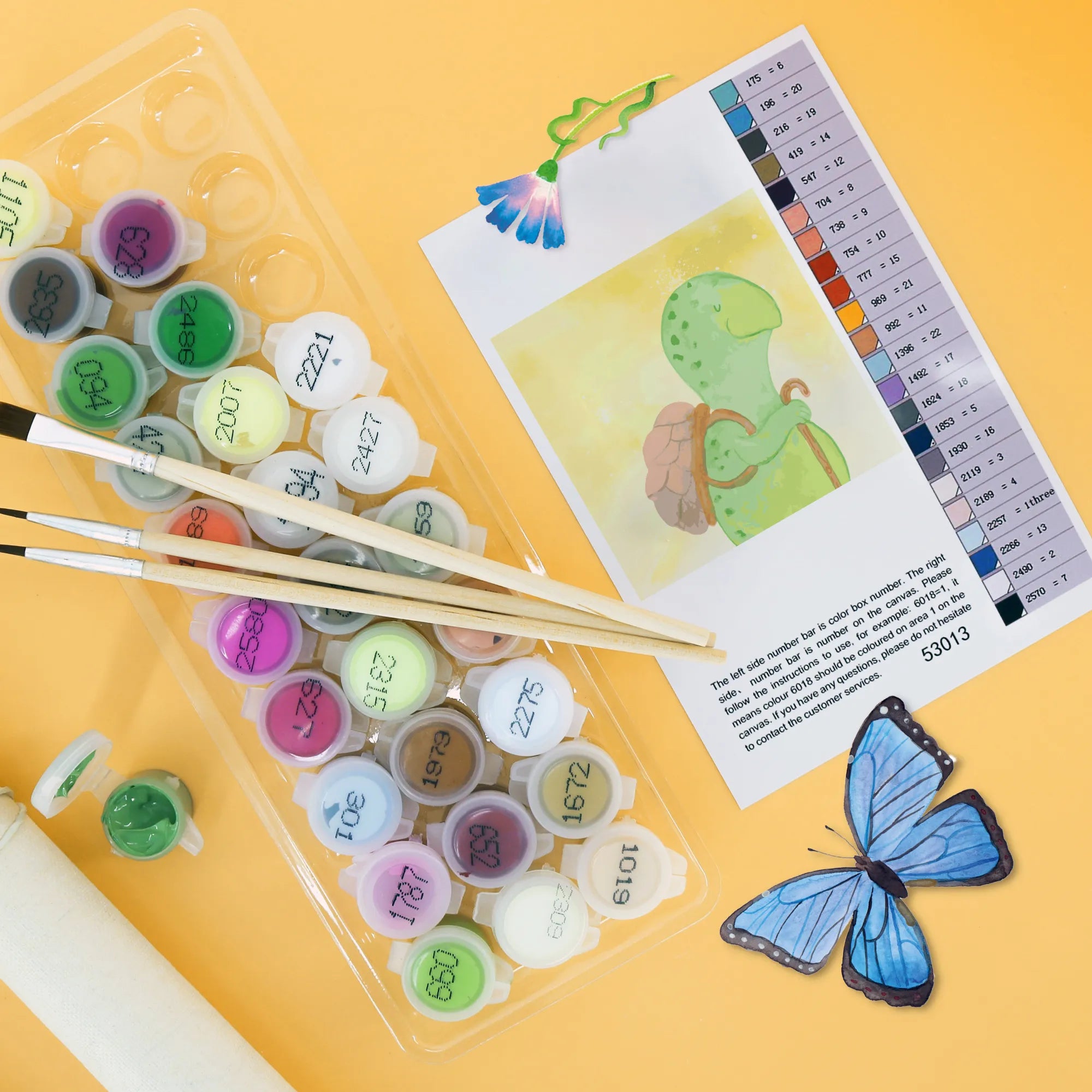 Ideal for turtle lovers, this paint by numbers kit is a great gift idea for birthdays, holidays, or just because! Whether you’re surprising a friend, your sister, mom, or daughter, this kit also serves as a unique bonding activity, perfect for creative minds looking to explore their artistic side. With high-quality acrylic paints in 24 vibrant colors and three premium brushes, each stroke of your brush will transform the canvas into a masterpiece.