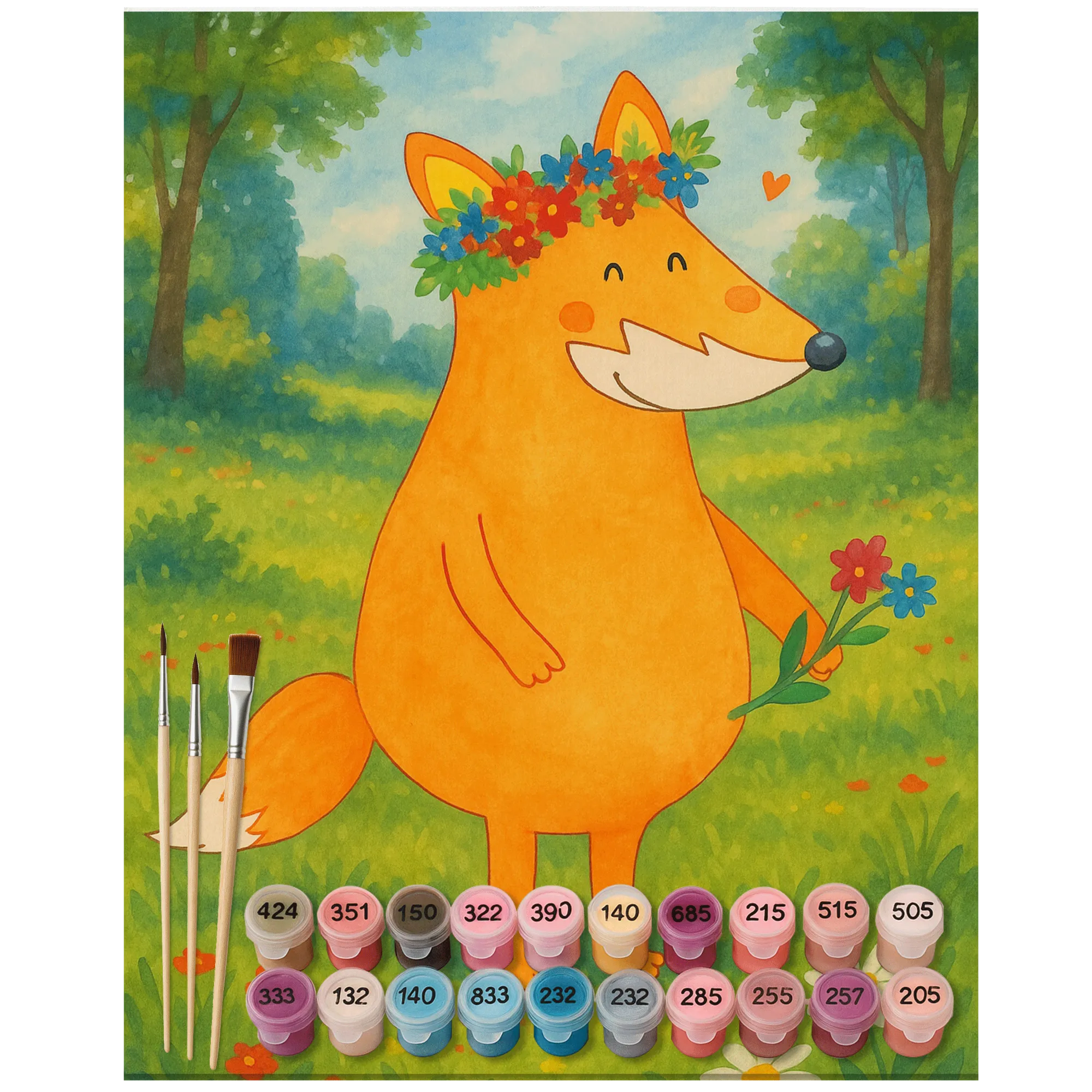Paint by Numbers Fox Flower Design - Ohne Rahmen - 24 Farben (Standard)