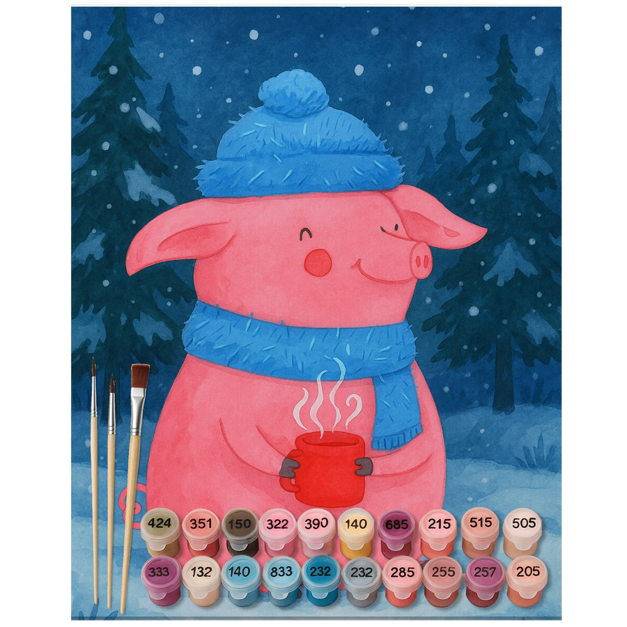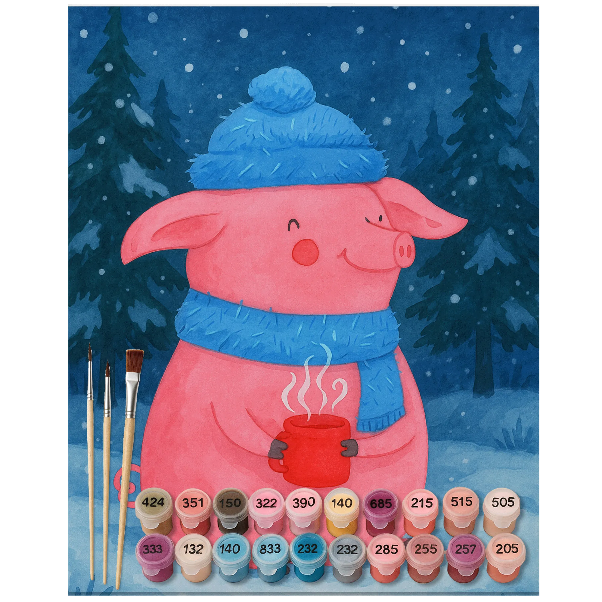 Paint by Numbers piggy Mulled wine Design - Ohne Rahmen - 24 Farben (Standard)