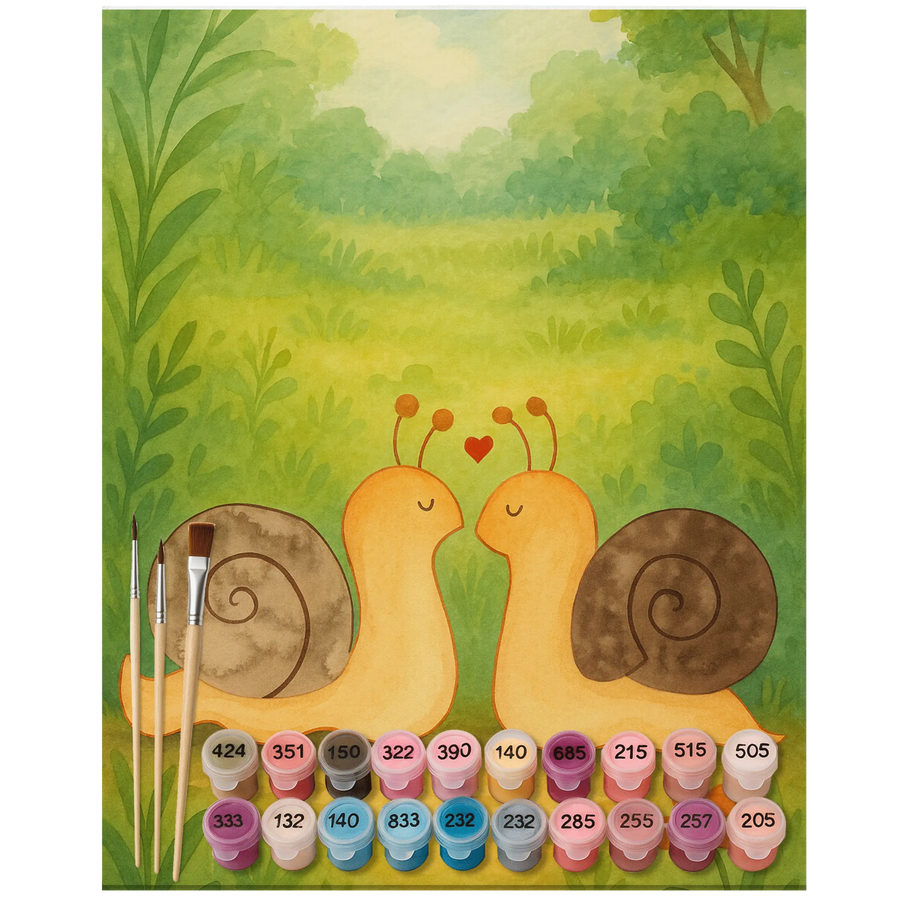 Paint by Numbers Snails in love Design - Ohne Rahmen - 24 Farben (Standard)