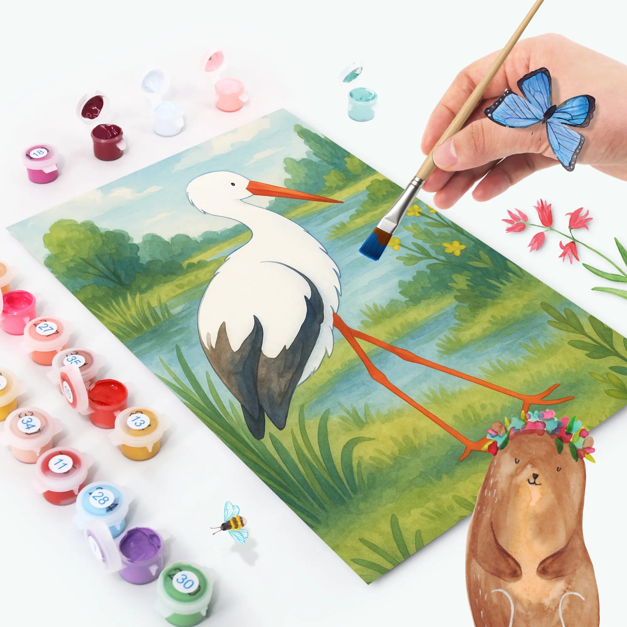 Paint by Numbers Stork Design small animals, cute, funny, cute animal motives, hand drawn, small world, funny sayings, good mood, happy, gifts, gift ideas, special gifts, animal lover, card, birth, baby bump, pregnant, stork, pregnancy, becoming a mother, mother, mothers, baby