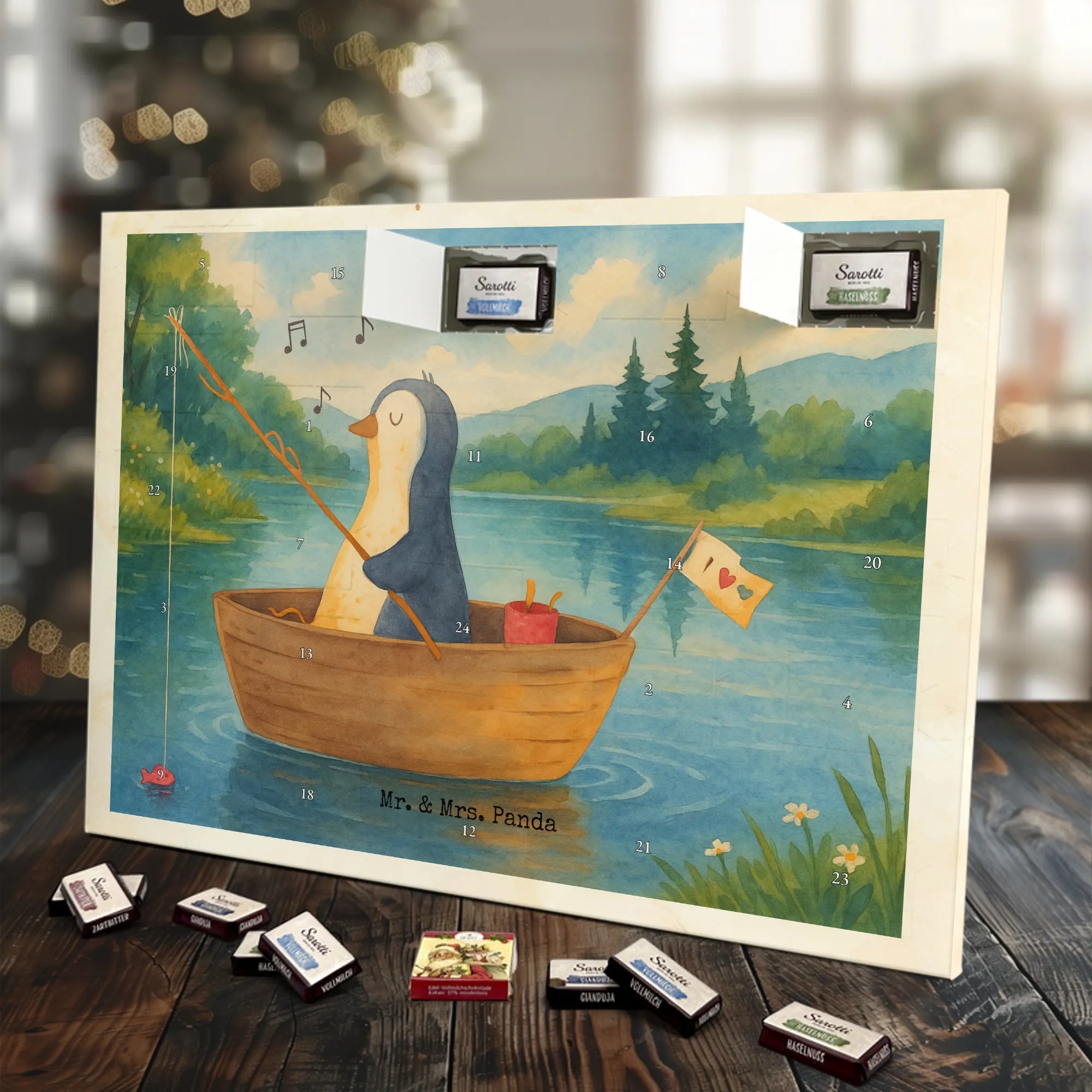 Chocolate advent calendar Penguin fishing boat Design - Lindt LINDOR - with saying